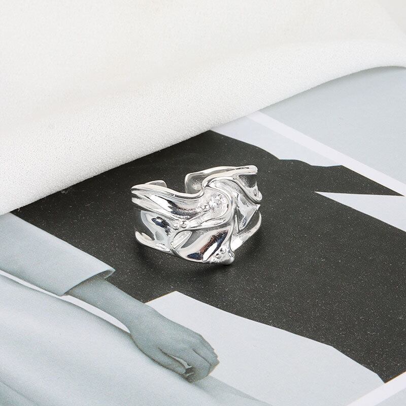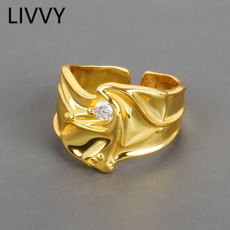 LIVVY ミニマリストシルバーカラー不規則な幾何学ワイドジルコンリングトレンディな花嫁の宝石類のギフト 指輪 銀 Liv42291126754