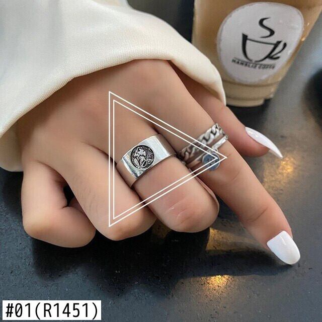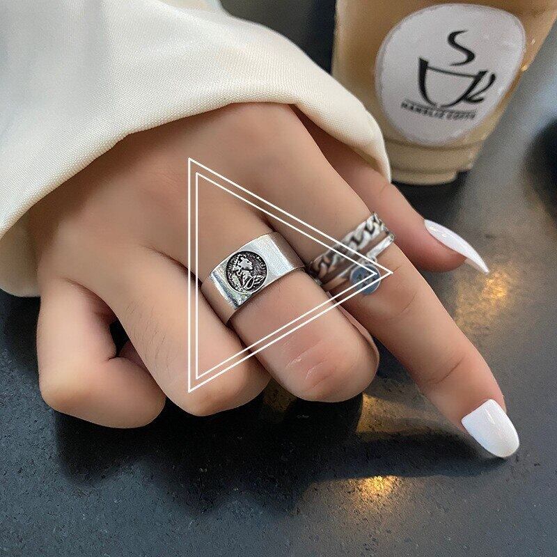 タイシルバーカラーポートレートワイドリング二重層ラウンドペンダント調節可能なリング女性ジュエリーパーティーギフト アジャスタブル 指輪 銀 Liv64270158795
