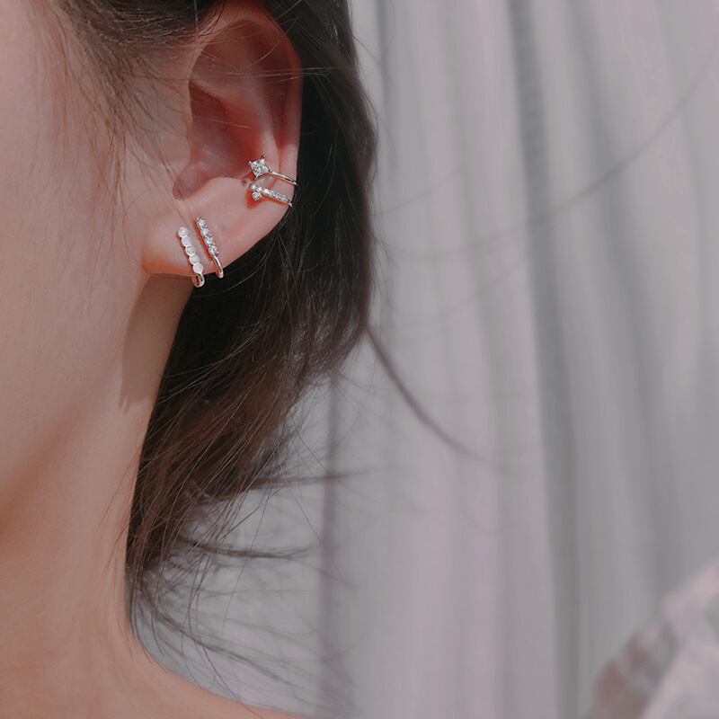 シルバーカラー二重層ジルコン幾何イヤリングcirclcleイヤーカフクリップなしピアスジュエリー 指輪 銀 Liv89572450177