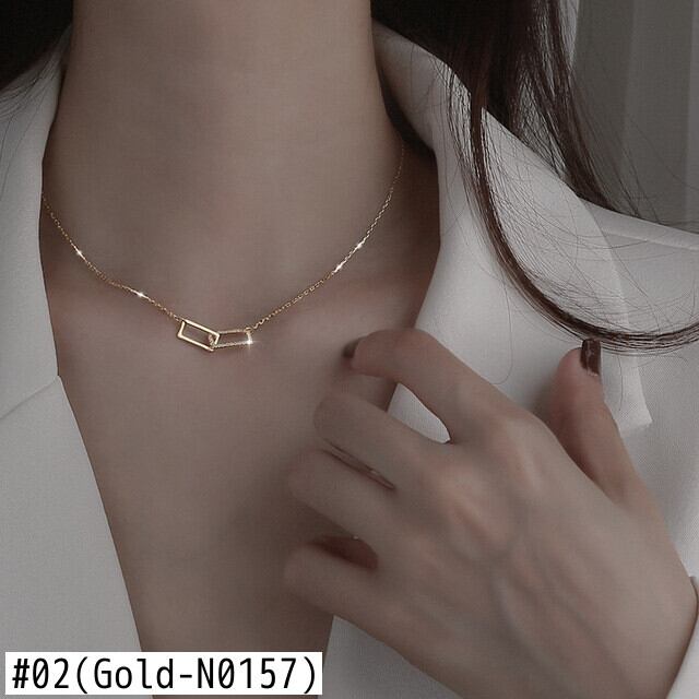 LIVVY シルバーカラー インターロッキング ダブル レクタングル ペンダント ネックレス ライト ラグジュアリー 誕生日 ギフト ジュエリー レース 銀 Liv6481770183