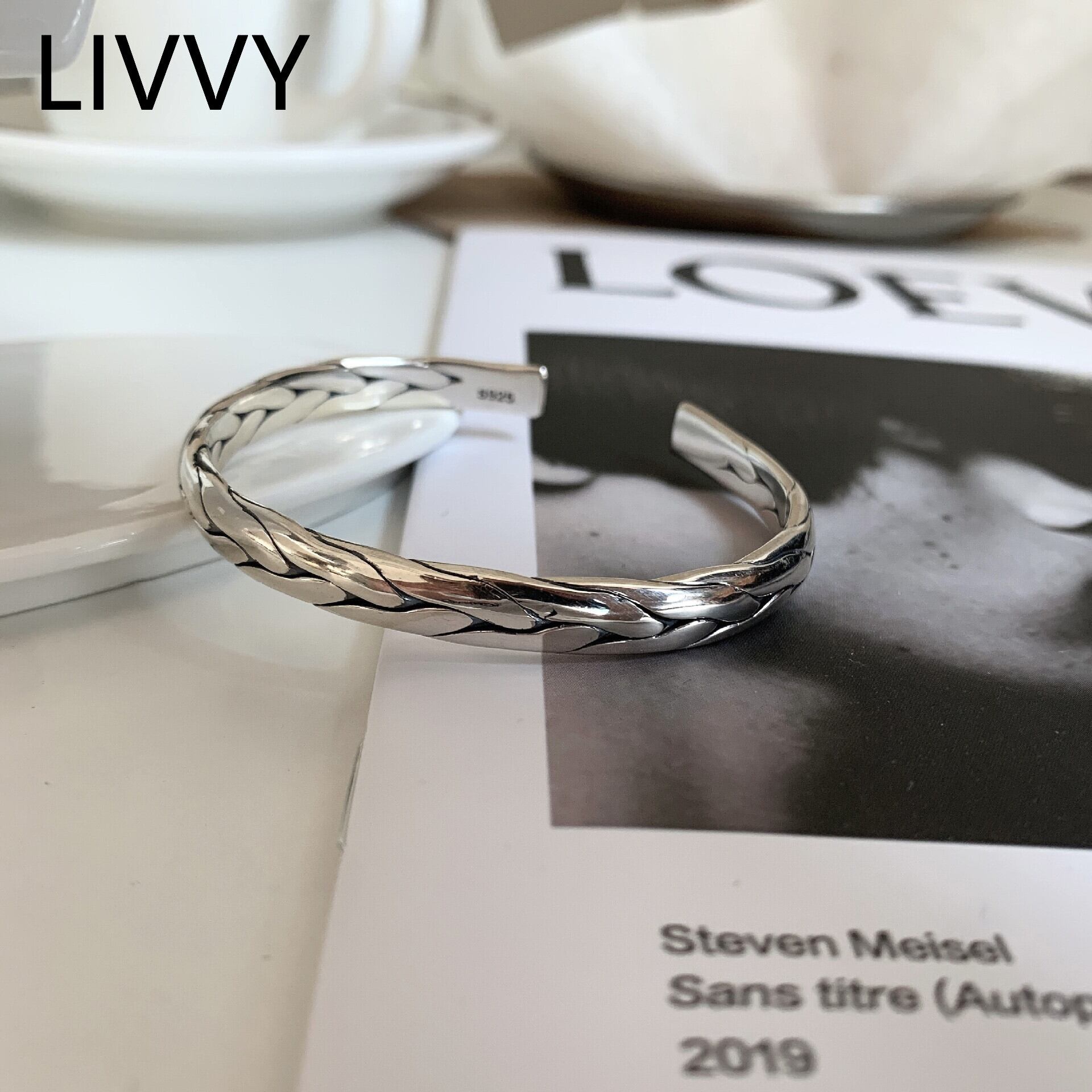 LIVVY シルバーカラー蛇紋岩ウィービングオープン調節可能なブレスレット女性絶妙な手作りジュエリーパーティーギフト アジャスタブル 銀 Liv22931673511