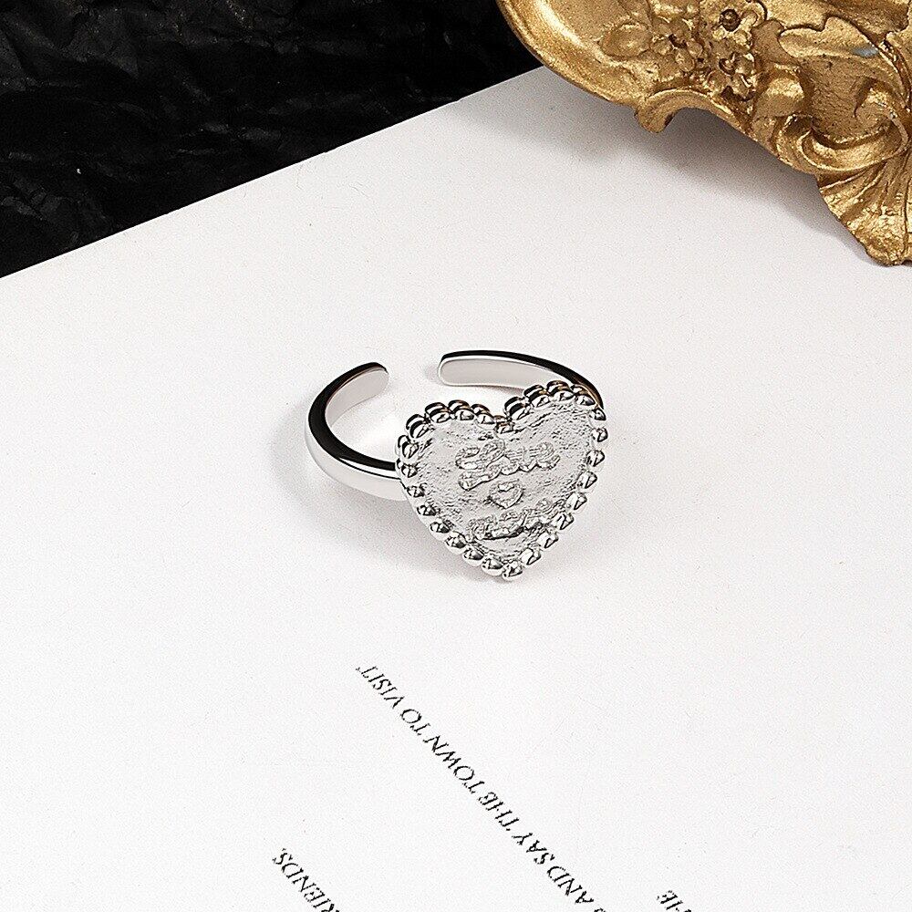 シルバーカラーのクリエイティブリング女性手作りオープンレースハート形の手紙ファインウェディング花嫁ジュエリーギフト 指輪 銀 Liv57633090153