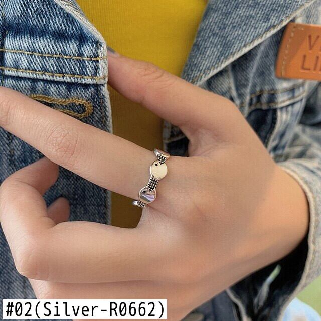 LIVVY シルバーカラー二重層魚リング女性クリエイティブヘッド調節可能なオープンリング自由奔放に生きるジュエリー アジャスタブル 指輪 銀 Liv86304129589