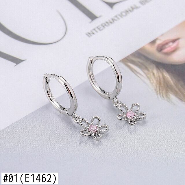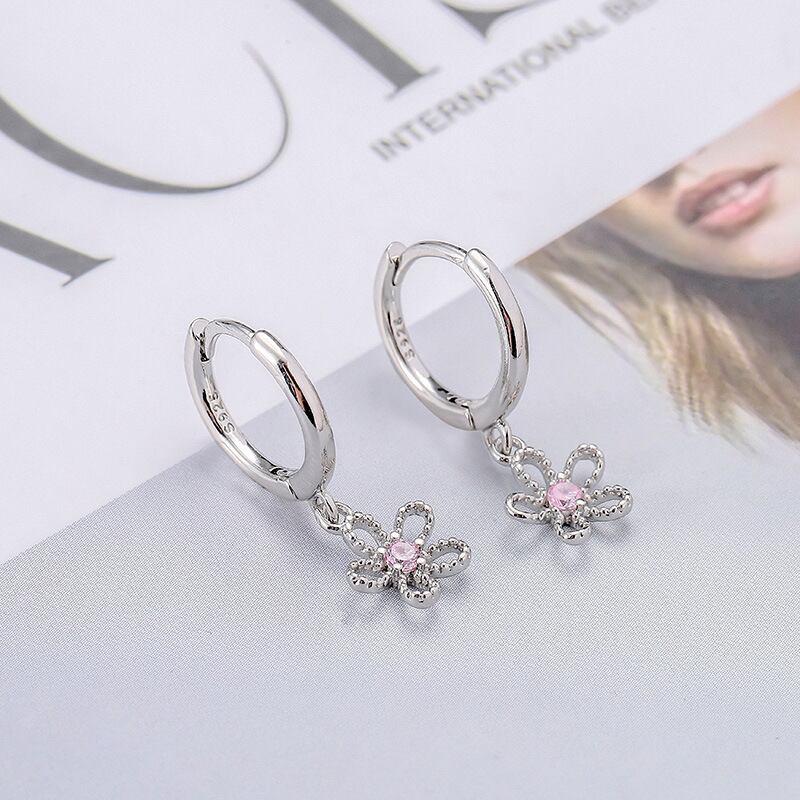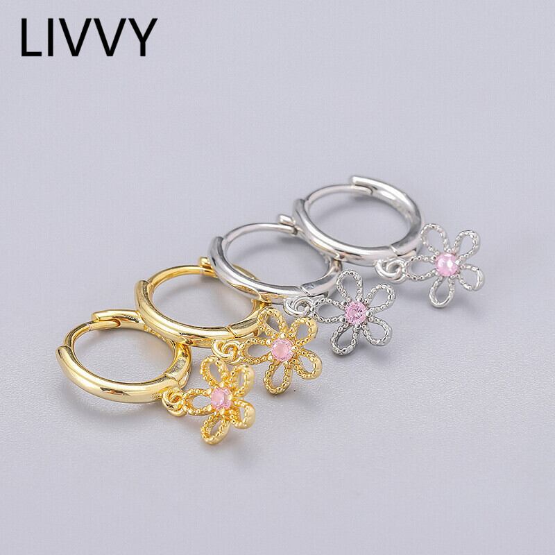 LIVVY シルバーカラー防止アレルギートレンディなピンクジルコンの花のイヤリング女性パーティーウェディング花嫁ジュエリーギフト 指輪 フラワーデザイン 銀 Liv71027662653