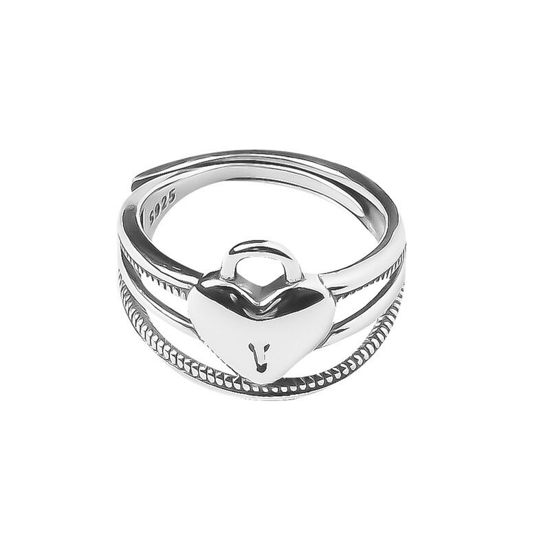 LIVVY シルバーカラークリエイティブ中空アウト幾何学調整リング女性のハートロック 3 層リングジュエリーギフト アジャスタブル 指輪 銀 Liv50652258833