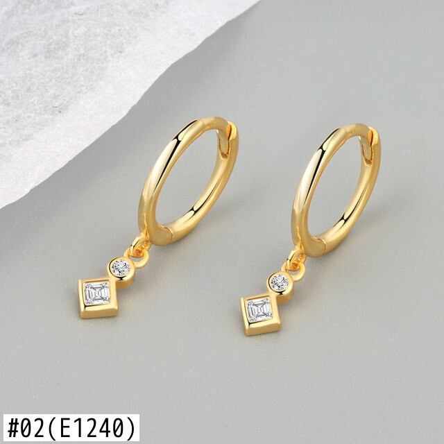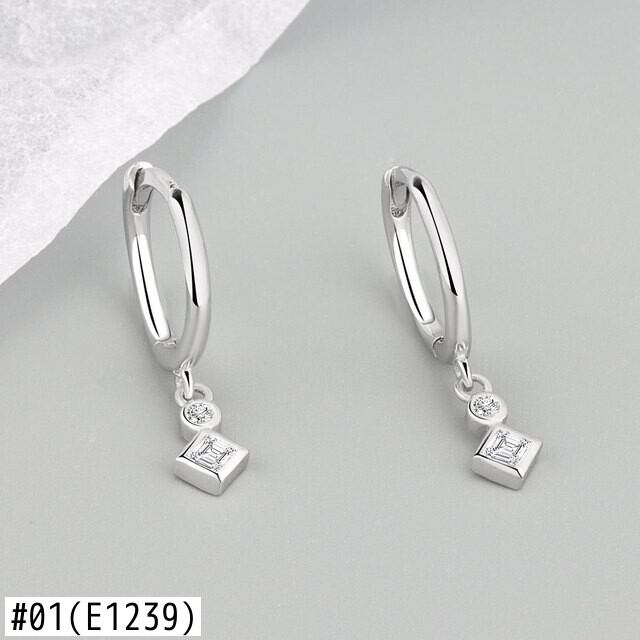 LIVVY シルバーカラーシンプルな幾何学スクエアラウンドジルコンペンダントイヤリング女性ショート絶妙なジュエリー 指輪 銀 スクウェア Liv80916906527