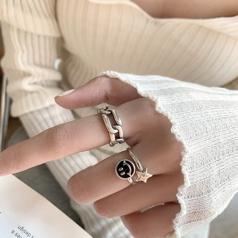 LIVVY シルバーカラーの笑顔スターリング女性男性太いチェーンタイシルバーリングジュエリーギフト 指輪 銀 Liv53184176239
