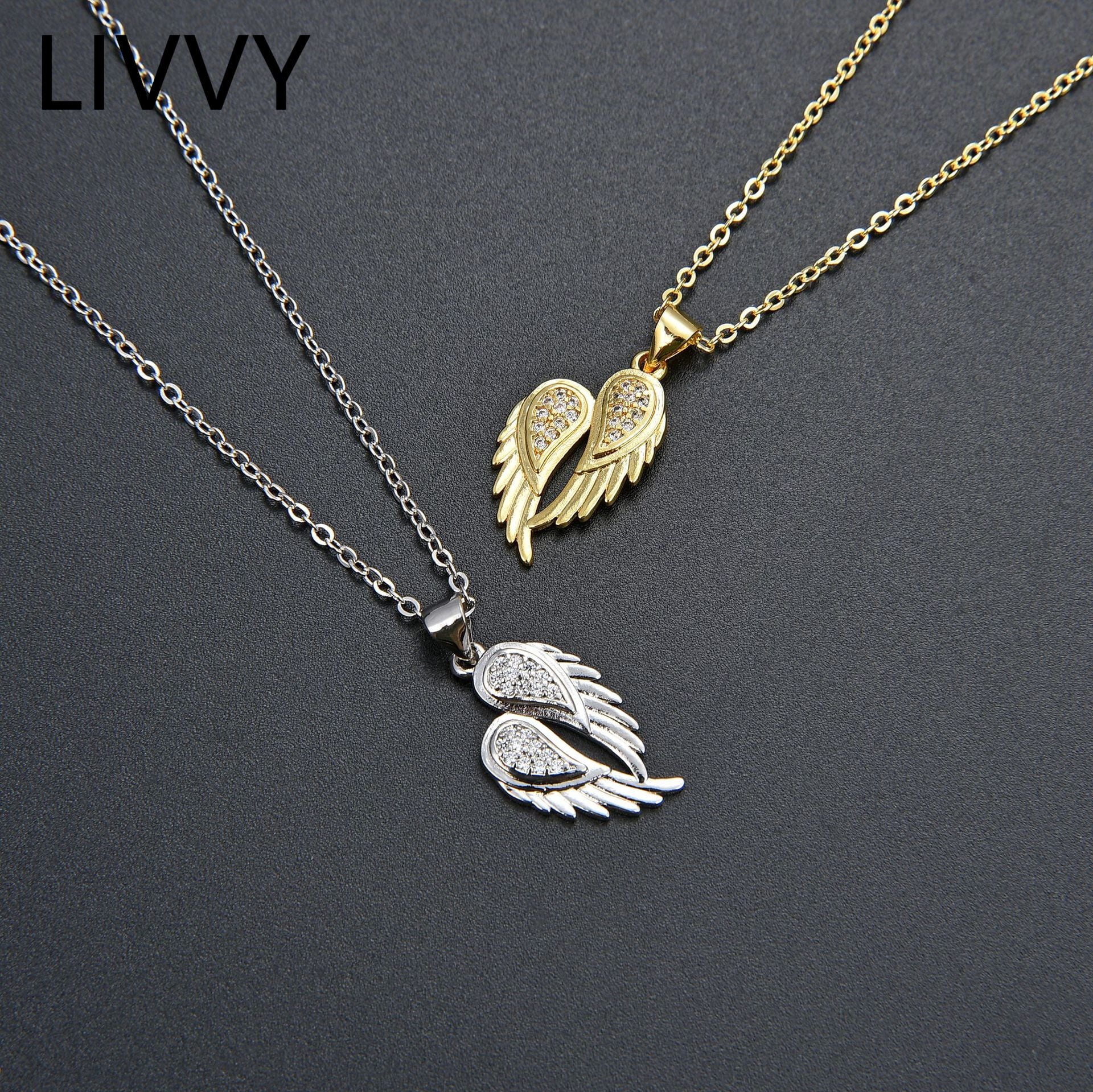 LIVVY シルバーカラー天使の羽ジルコンペンダントネックレス鎖骨チェーンレディースメンズジュエリー レース 銀 Liv86229921656