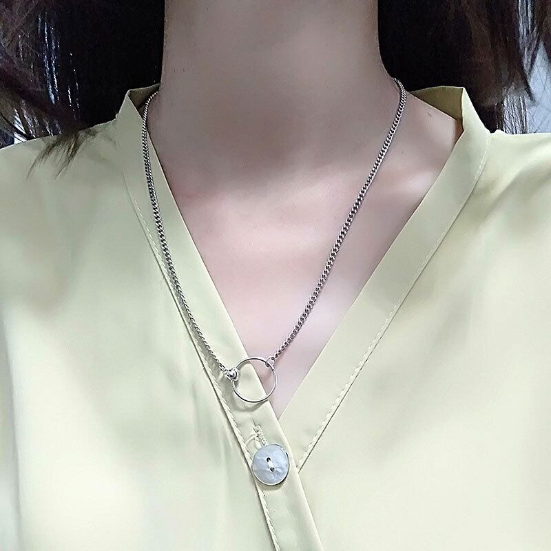 LIVVY シルバーカラーラウンド中空ペンダントネックレスミニマリスト女性手作りパーティージュエリーアクセサリー レース 銀 Liv90819930843