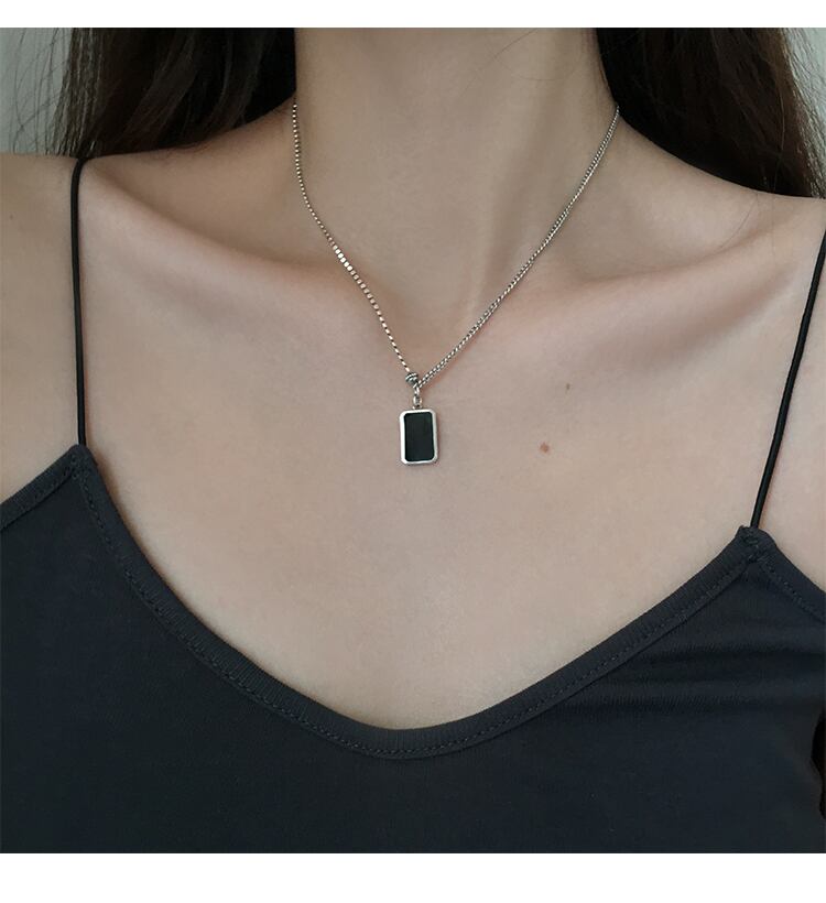 LIVVY 長方形ペンダントネックレス両面文字黒ラインストーン鎖骨チェーンチャームトレンドジュエリーアレルギーを防止 ブラック レース Liv47969426020
