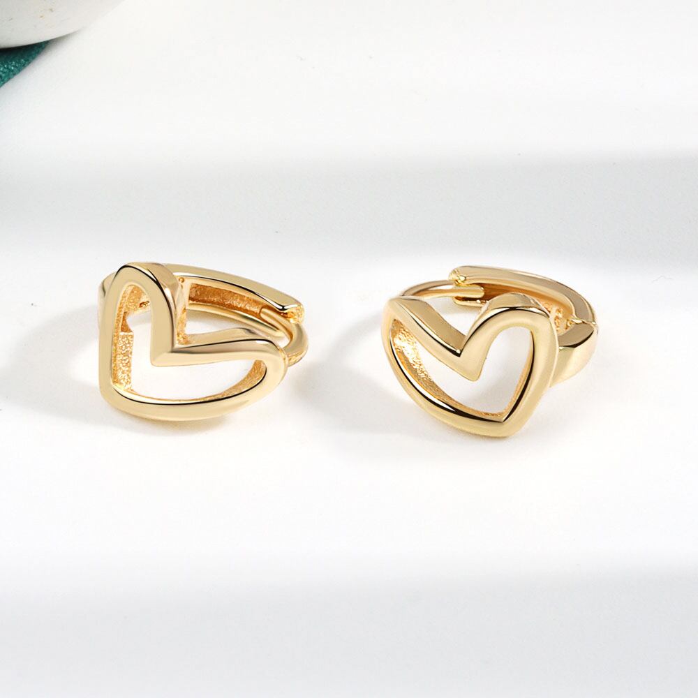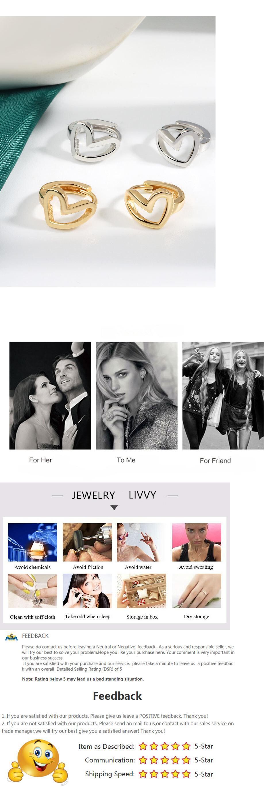 LIVVY シルバーカラー中空アウトハート型フープイヤリング女性ガールシンプルなトレンドチャームジュエリーパーティーギフト 指輪 銀 Liv91118385199