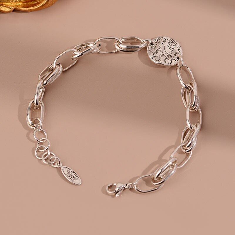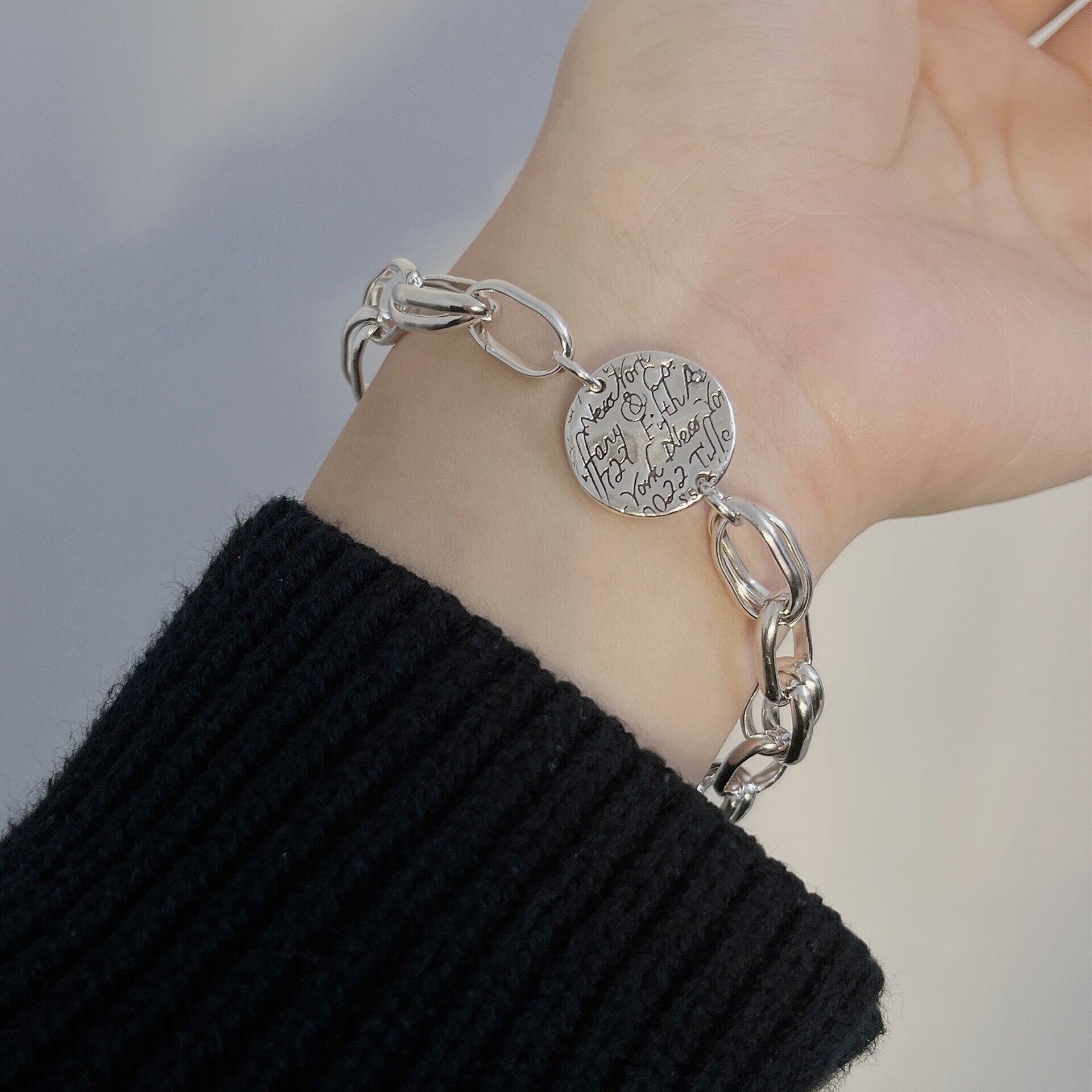 LIVVY シルバーカラー不規則なラウンドカードブレスレット女性ガールトレンディジュエリーパーティーギフト 銀 Liv90548687278
