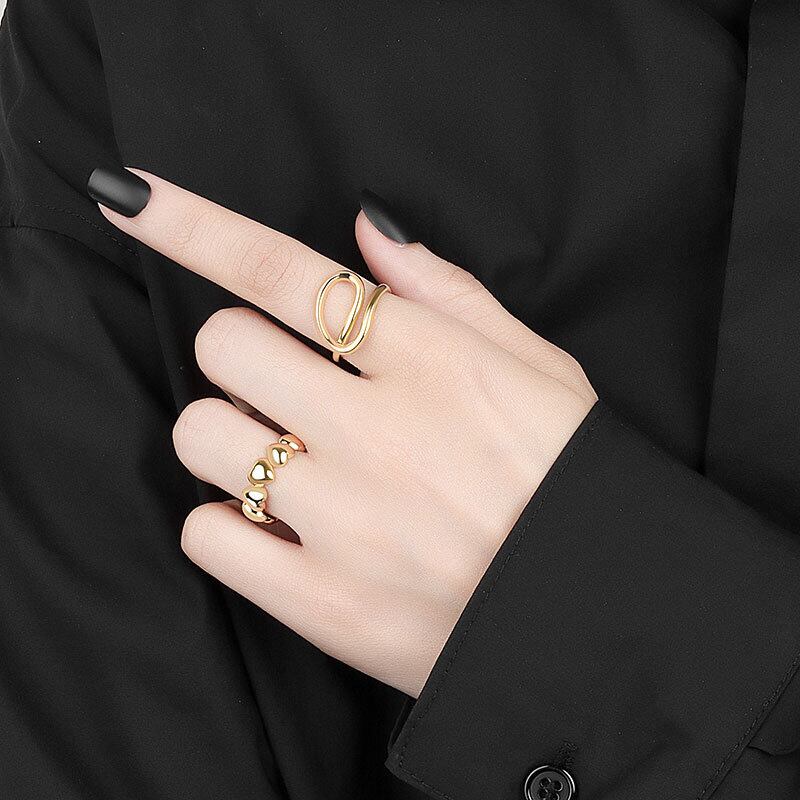 LIVVY シルバーカラーの愛のハートリンクオープニング調節可能なリング女性トレンドクリエイティブパーティージュエリーギフト アジャスタブル 指輪 銀 Liv85139054432