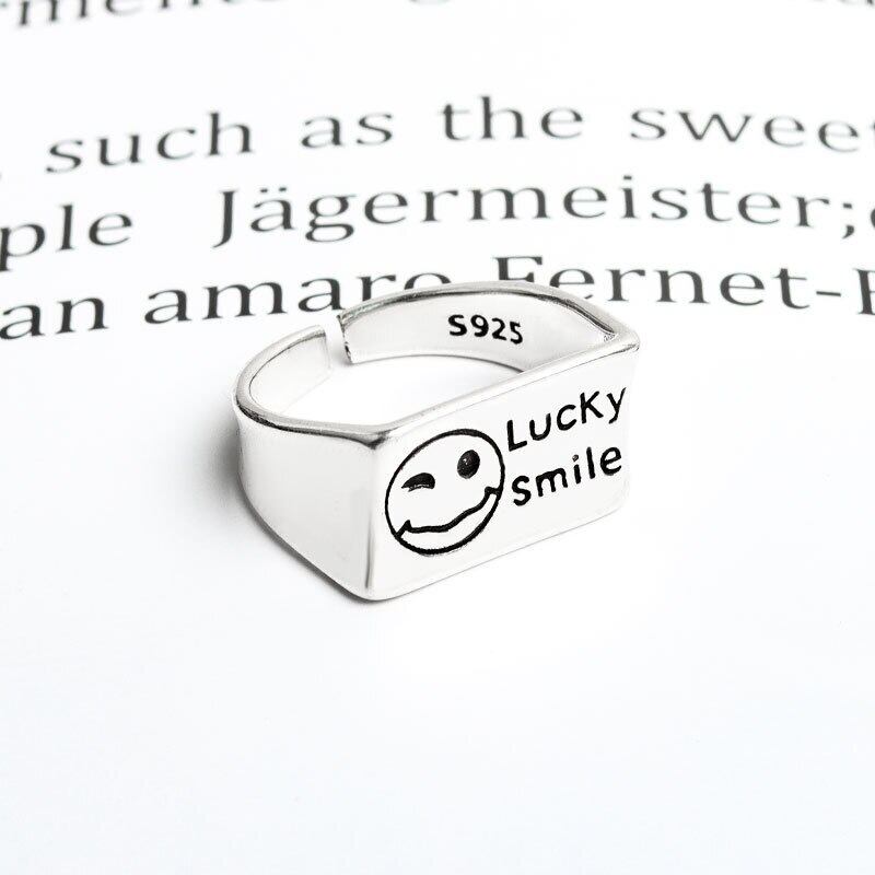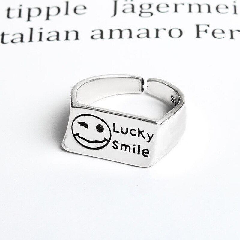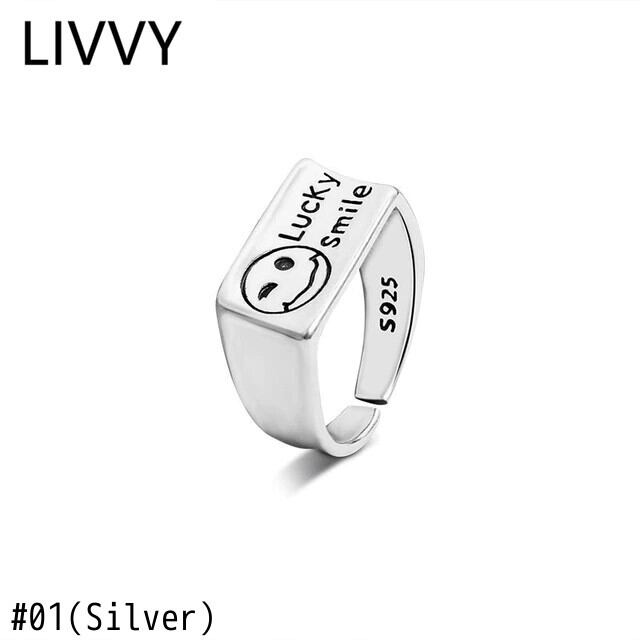 LIVVY シルバーカラー運笑顔リング女性調節可能なリングファインジュエリートレンディなパーティービジューギフト アジャスタブル 指輪 銀 Liv4212847175