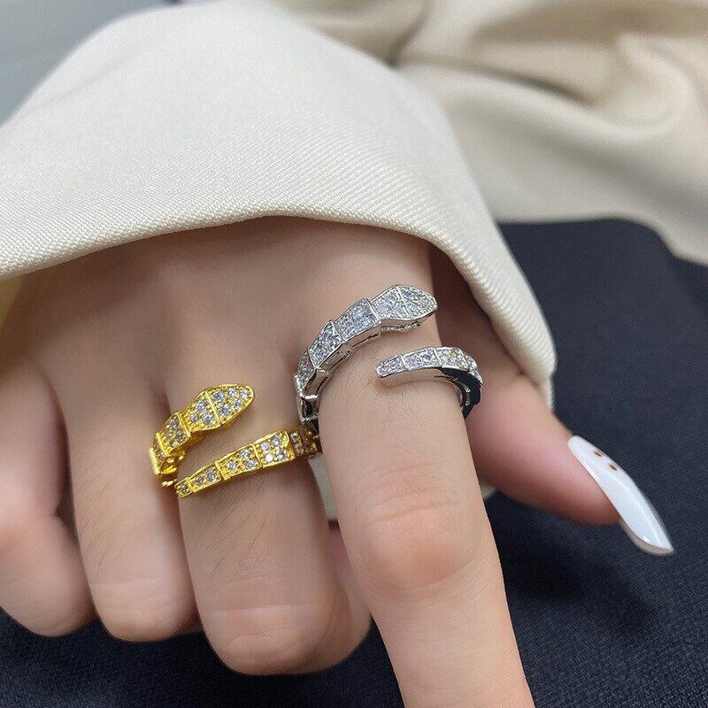 LIVVY シルバーカラークリエイティブ幾何学的なヘビの形のジルコンリング女性カップル手作りシンプルな人格ジュエリー 指輪 銀 Liv28776180288
