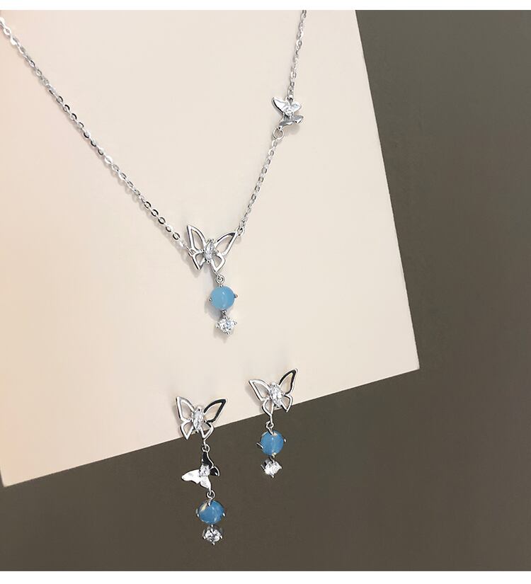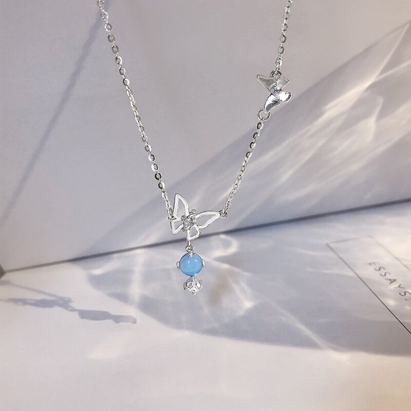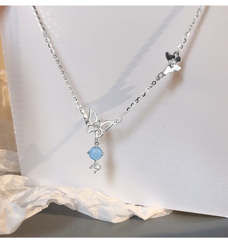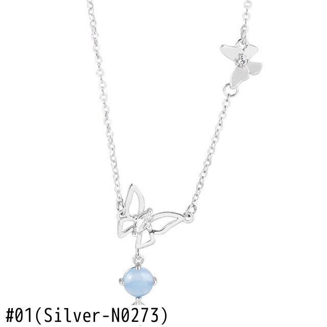 LIVVY シルバーカラーのペンダントネックレス蝶ジルコン Tel ネックレスシンプルな鎖骨チェーン気質ギフト レース 銀 Liv22721773729