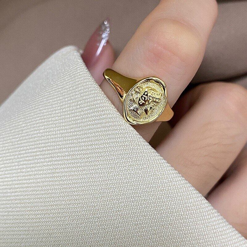 LIVVY シンプルな幾何学的なラウンド オーバル不規則なテクスチャが開きます調節可能なリング レトロ ジュエリー アクセサリー ギフト アジャスタブル 指輪 Liv6326109345