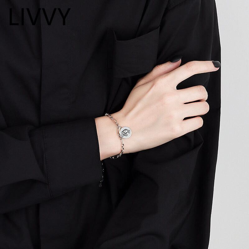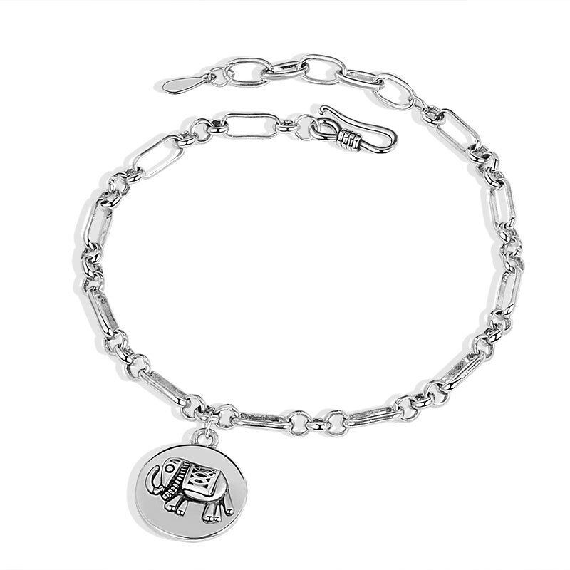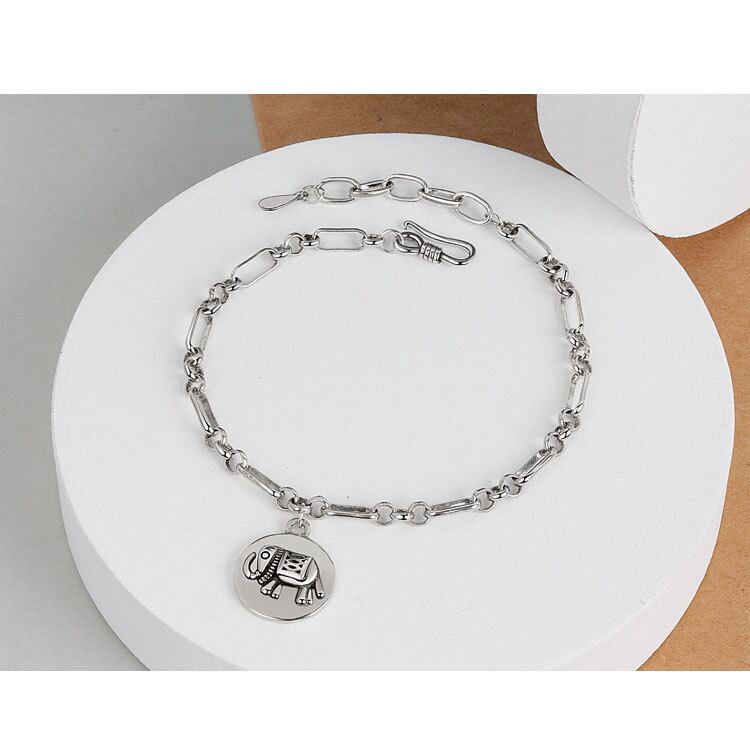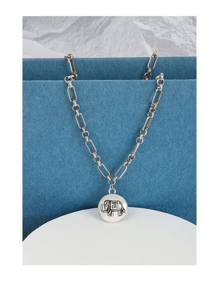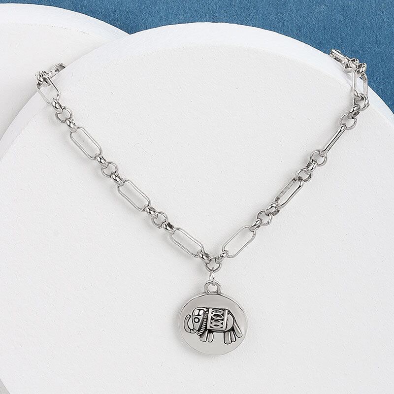 LIVVY タイシルバーカラー象パターン円形ペンダントバングル & ブレスレット女性カップルパーティージュエリー 銀 Liv50531397337