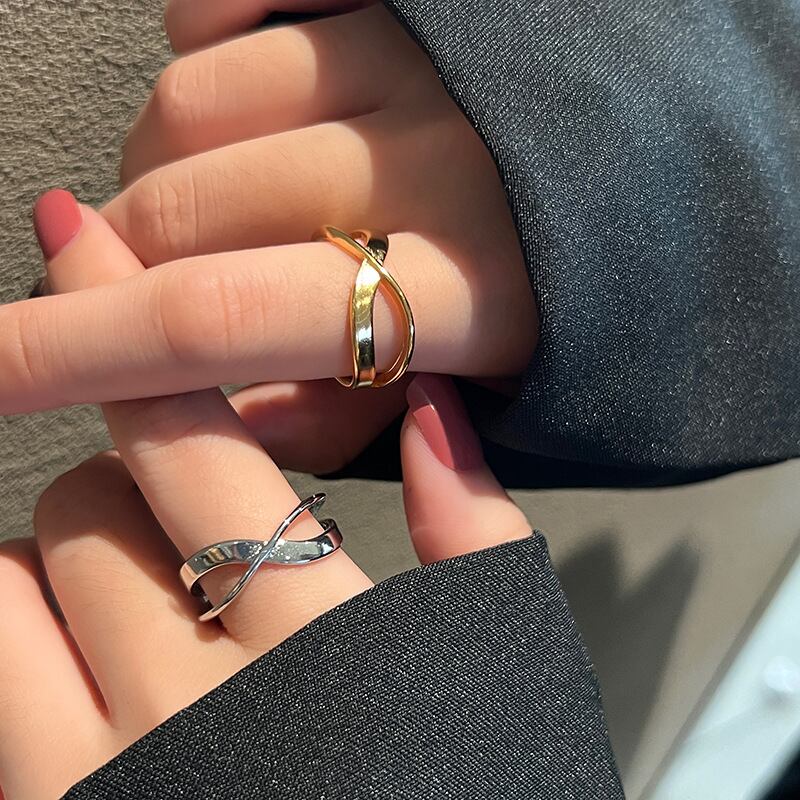 LIVVY ミニマリストシルバーカラークロスリング女性クリエイティブ調節可能なシンプルなパーティーファインジュエリー アジャスタブル 指輪 銀 Liv68105013271