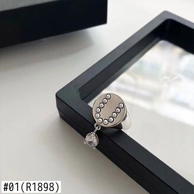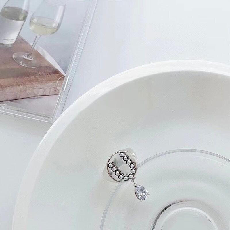 LIVVYSilver 色スムーズラウンドワイドリング女性 U 字型の真珠水クリスタルペンダントクリエイティブ誕生日ジュエリー 指輪 パール シルバー 銀 Liv37115179330