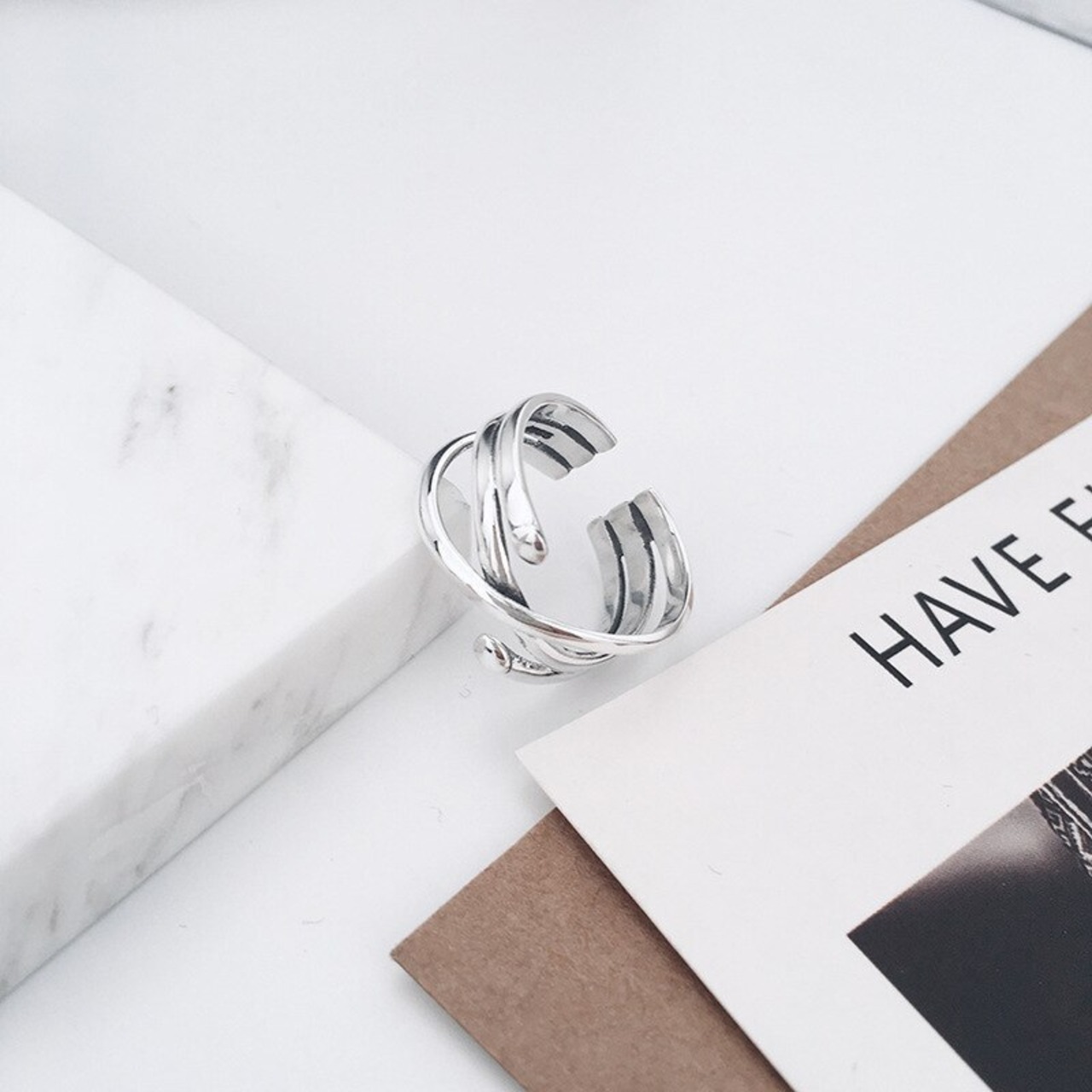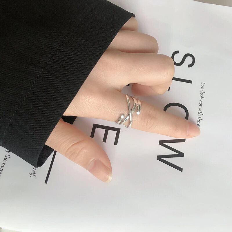 LIVVY シルバーカラー シンプル 幾何学的 クロスリング 調節可能 多層 滑らか ジュエリー アクセサリー アジャスタブル 指輪 銀 Liv34038559953