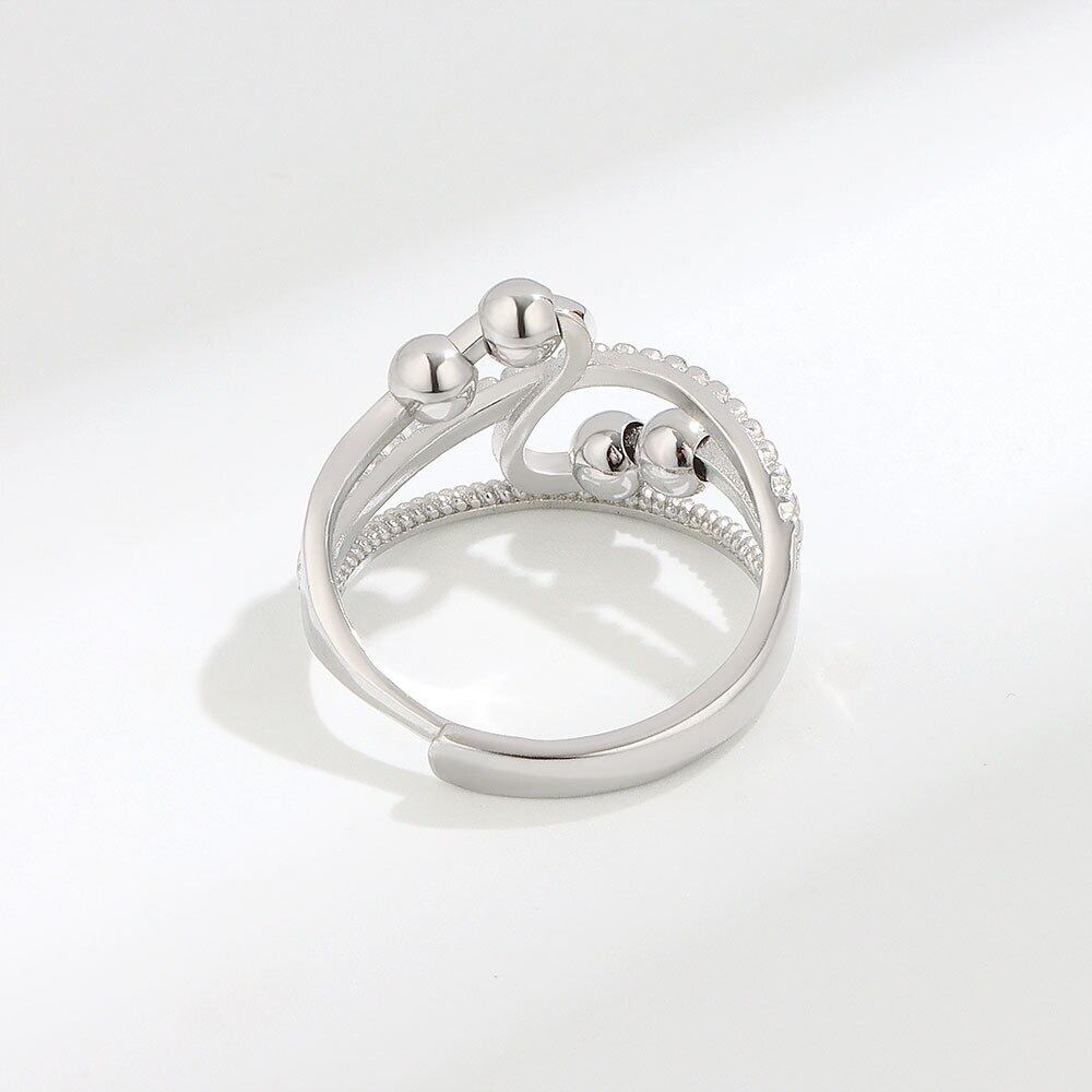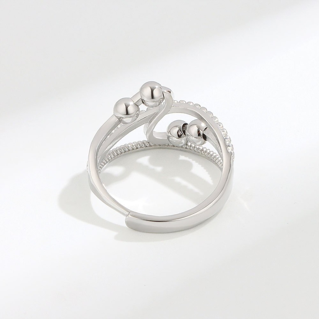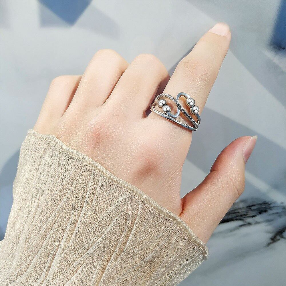 LIVVY シルバーカラービーズリリーフ不安多層ラインオープニング調整リング女性ファインジュエリー アジャスタブル マルチレイヤー 指輪 銀 Liv81752634195