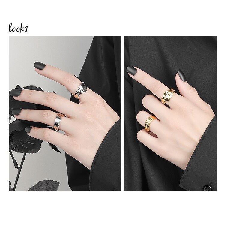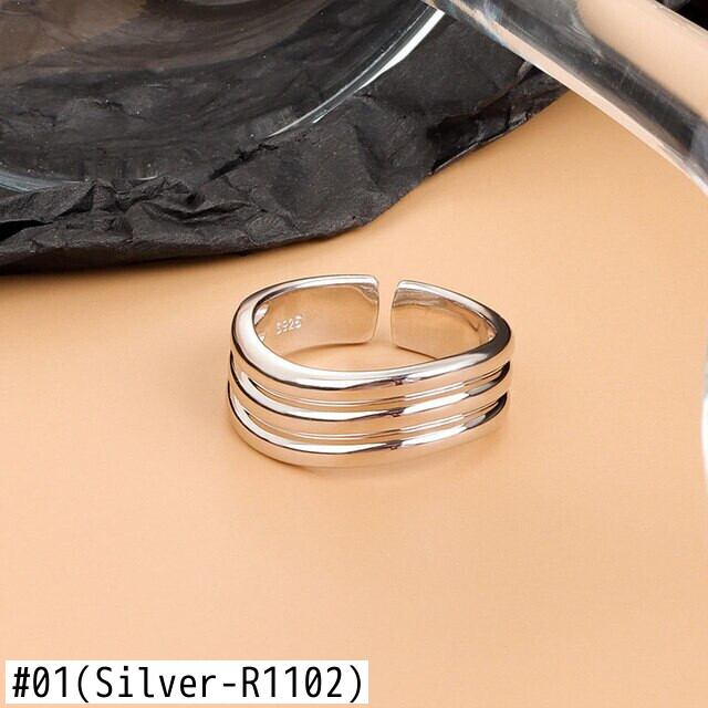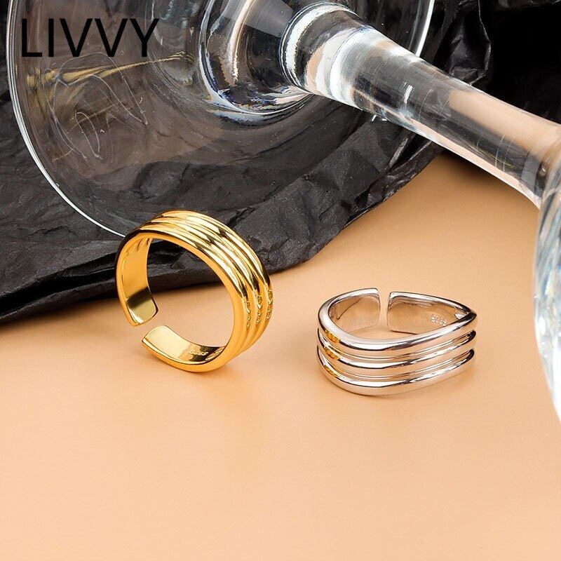 LIVVY シルバーカラーの滑らかな多層リング女性シンプルなパーティー手作りジュエリーアクセサリー マルチレイヤー 指輪 銀 Liv59044538856