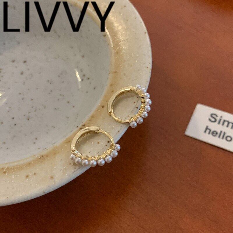 LIVVY シルバーカラーインスタイルトレンディな真珠フープイヤリング女性アクセサリー花嫁ジュエリー誕生日プレゼント パール 指輪 銀 Liv19483206851