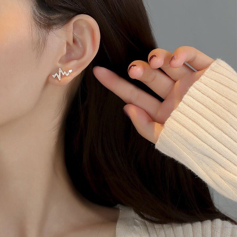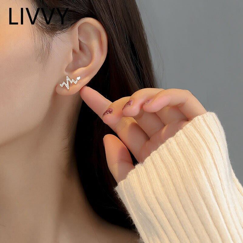 LIVVY イレギュラー ウェーブ ジルコン スモール ピアス シンプル 絶妙 - 絶妙なジュエリー イヤリング リング 指輪 Liv57756434253