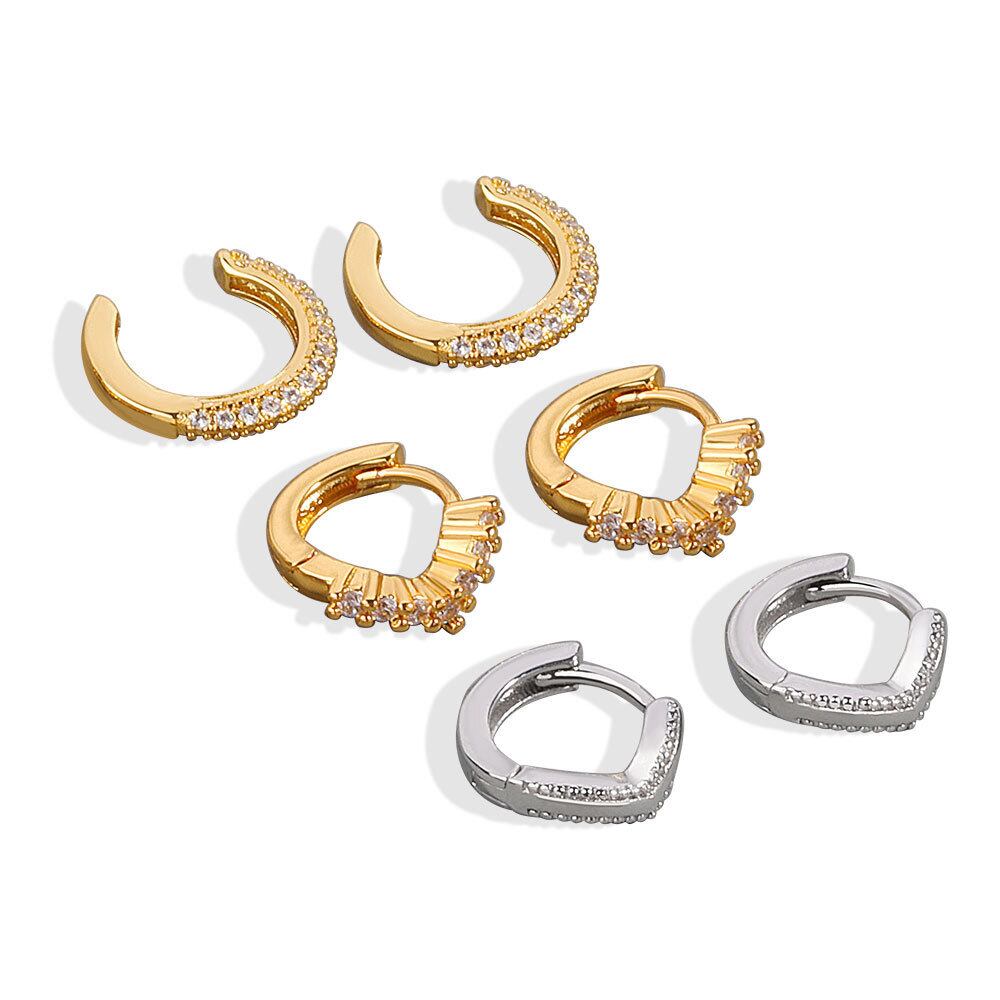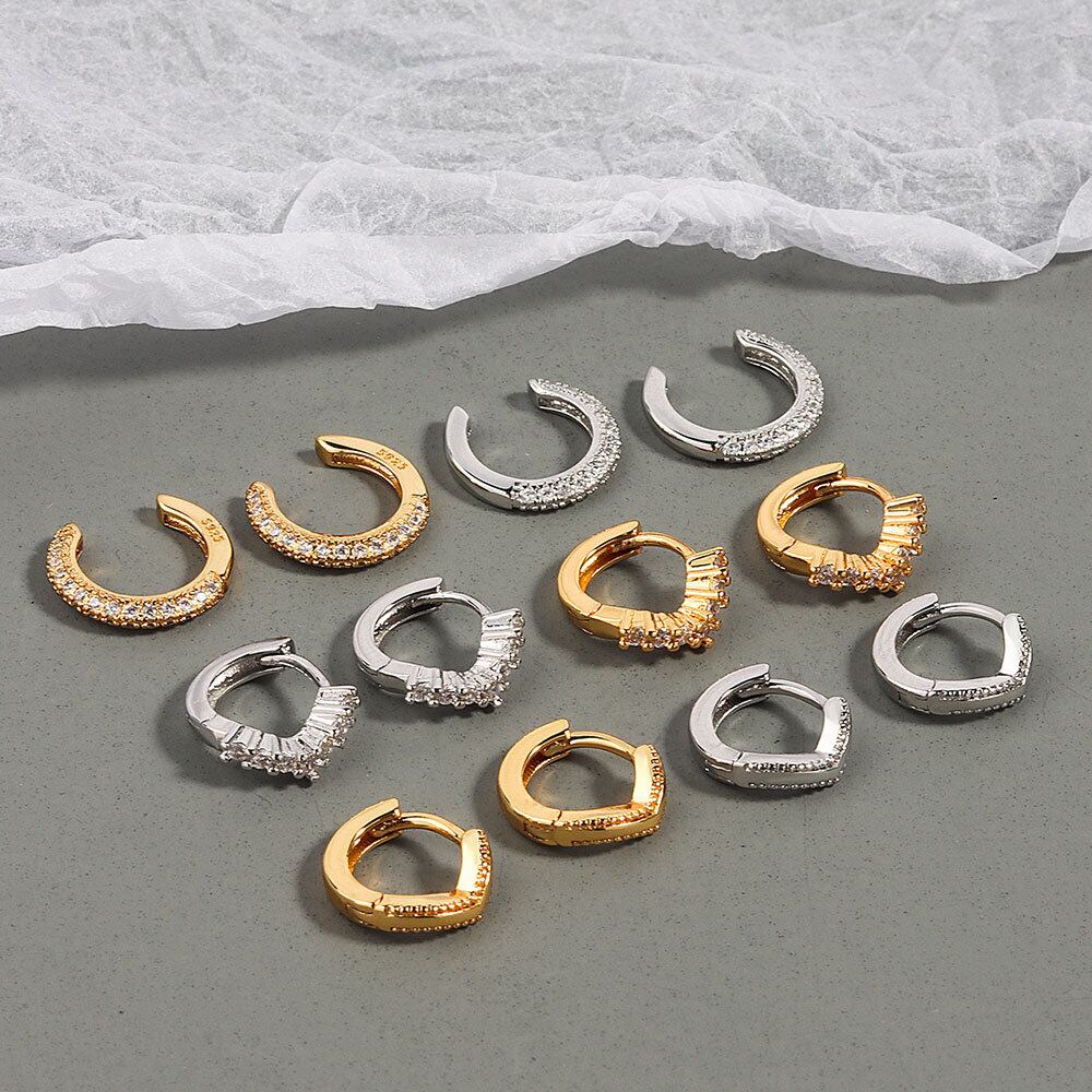 LIVVY 2021 シルバーカラーエレガンスジオメトリシェイプジルコンイヤリング女性シンプルなトレンディなジュエリーパーティーギフト 指輪 銀 Liv62307931366