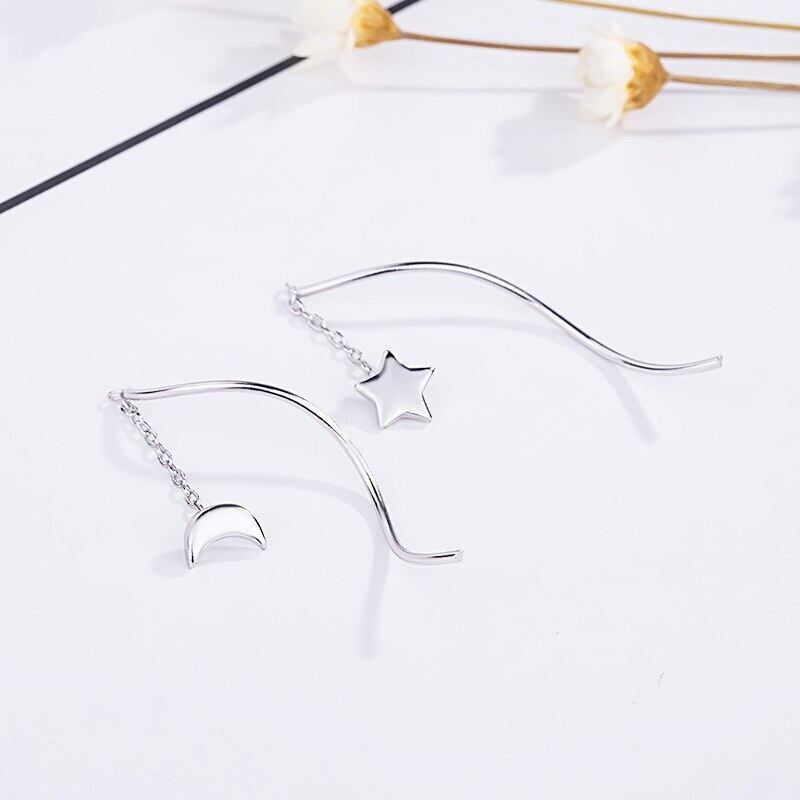 LIVVY シルバー色非対称スタームーン Tel スタッドピアス女性ガール手作り絶妙なジュエリーパーティーギフト イヤリング リング 指輪 銀 Liv19969655830