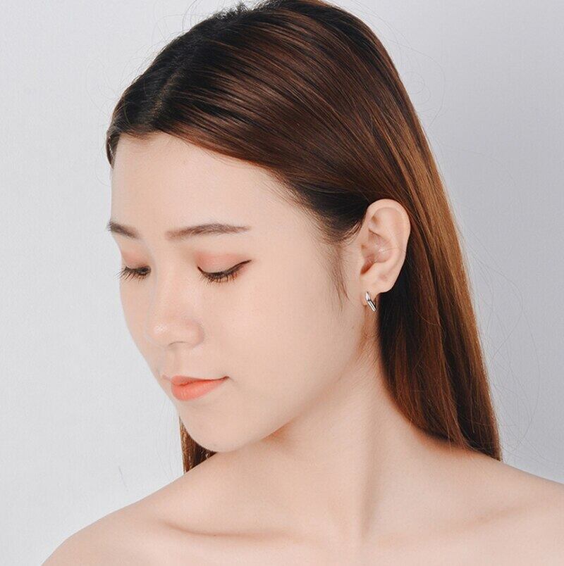 LIVVY ミニマリストシルバーカラーラブハート型のイヤリング女性の個性トレンドジュエリーカップルギフト 銀 Liv53702098684