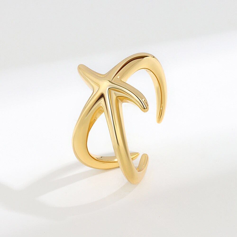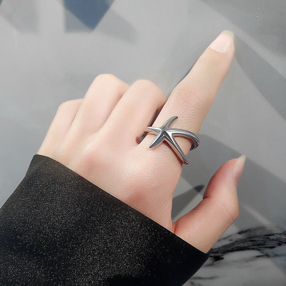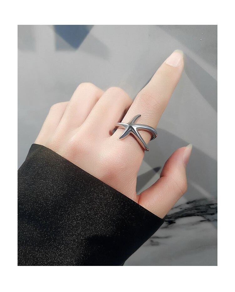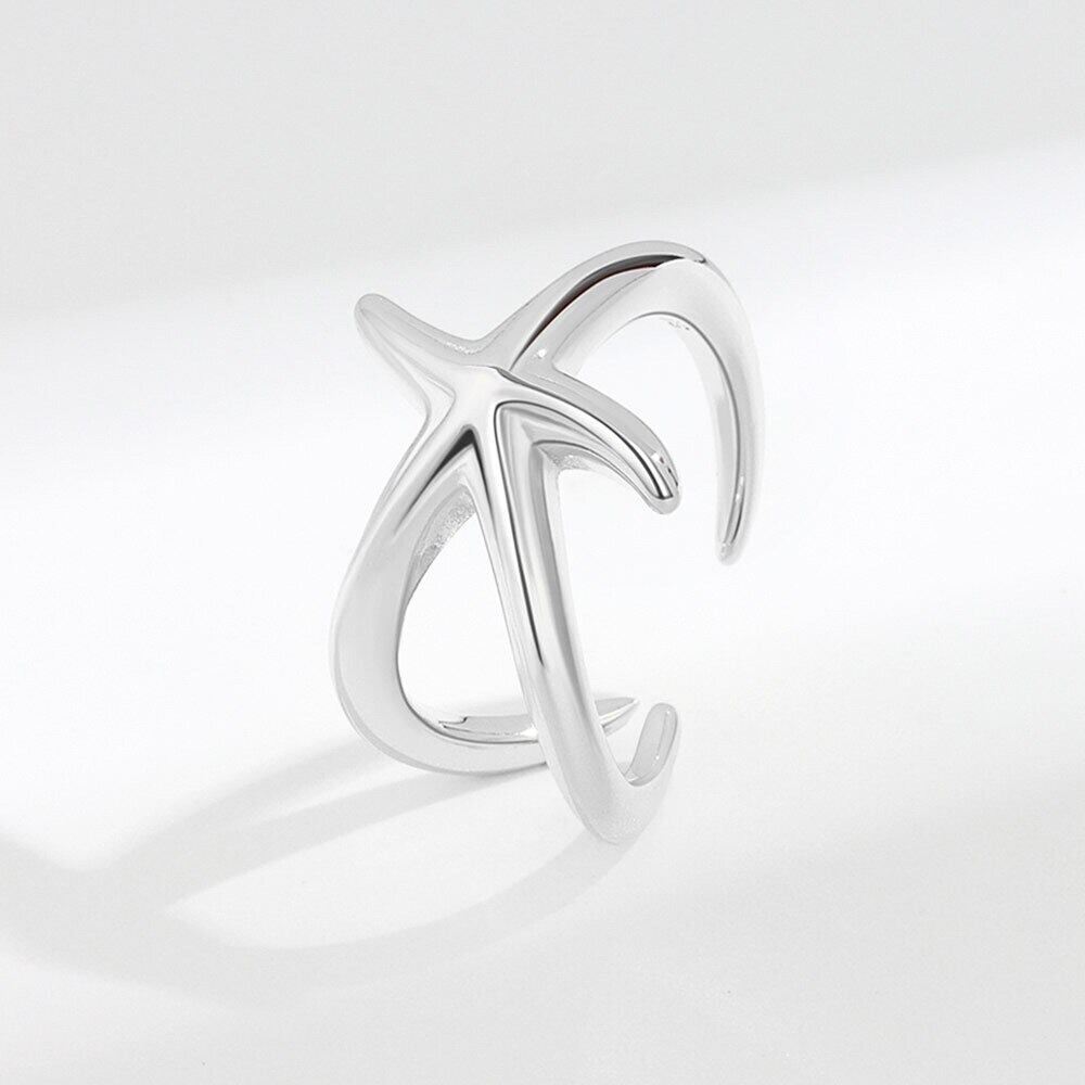 LIVVY シルバーカラーシンプルなクリエイティブスムーズなヒトデリング女性ガールアクセサリー流行のヒップホップパーティージュエリー 指輪 銀 Liv68551607464