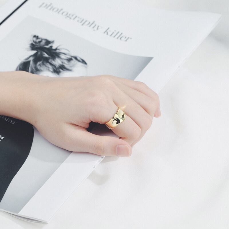 LIVVY シルバーカラー不規則な正方形の幾何学指リングシンプルな幾何学的なジュエリーギフト女性調節可能 アジャスタブル 指輪 銀 スクウェア Liv11034941534