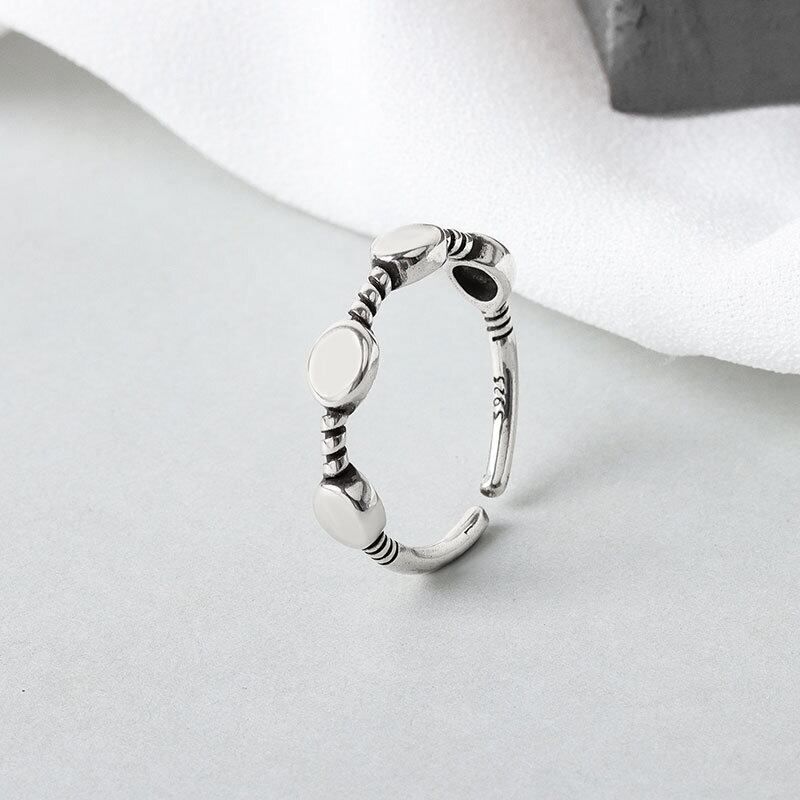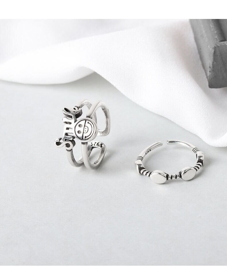 LIVVY シルバーカラー ダブルラウンド スマイリーフェイス リング レトロ イレギュラー ジュエリー クリックリング 2021 トレンド 指輪 銀 Liv4167338814