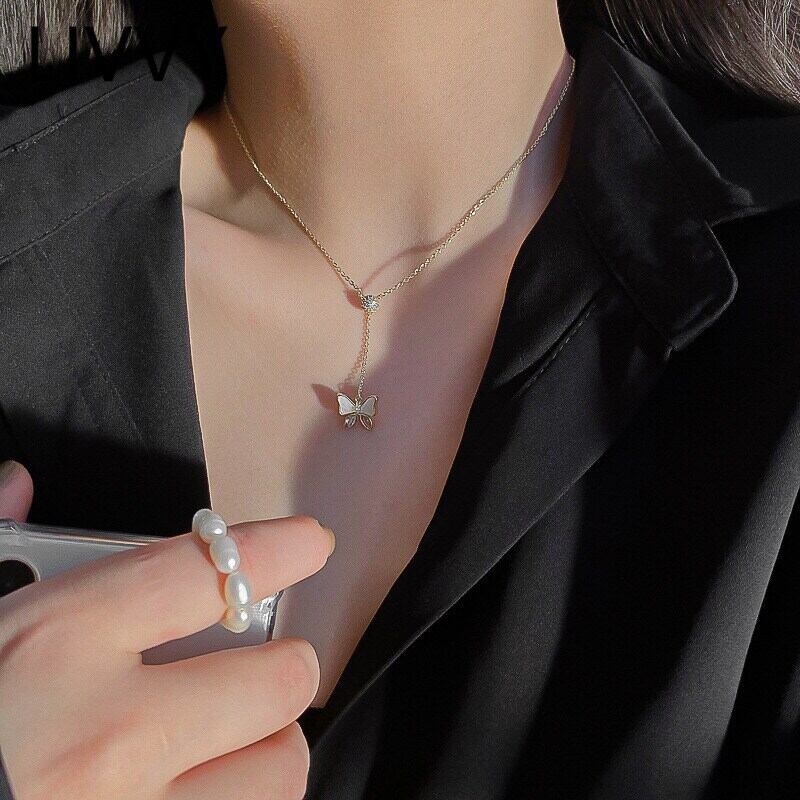 LIVVY シルバーカラーナチュラルシェルバタフライ Tel ペンダントネックレス女性ファインジュエリー調節可能 レース アジャスタブル 銀 天然 Liv46070563619