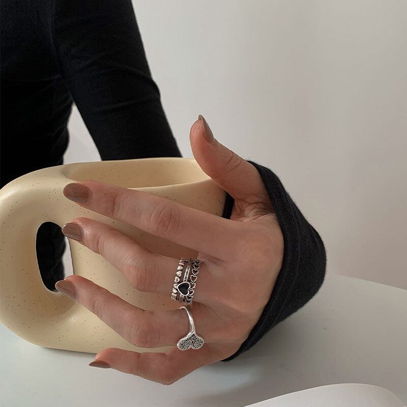 LIVVY パンクシルバーカラーパーティーリング女性クリエイティブラブハートファインジュエリーウェディングアクセサリー 指輪 銀 Liv23942016384