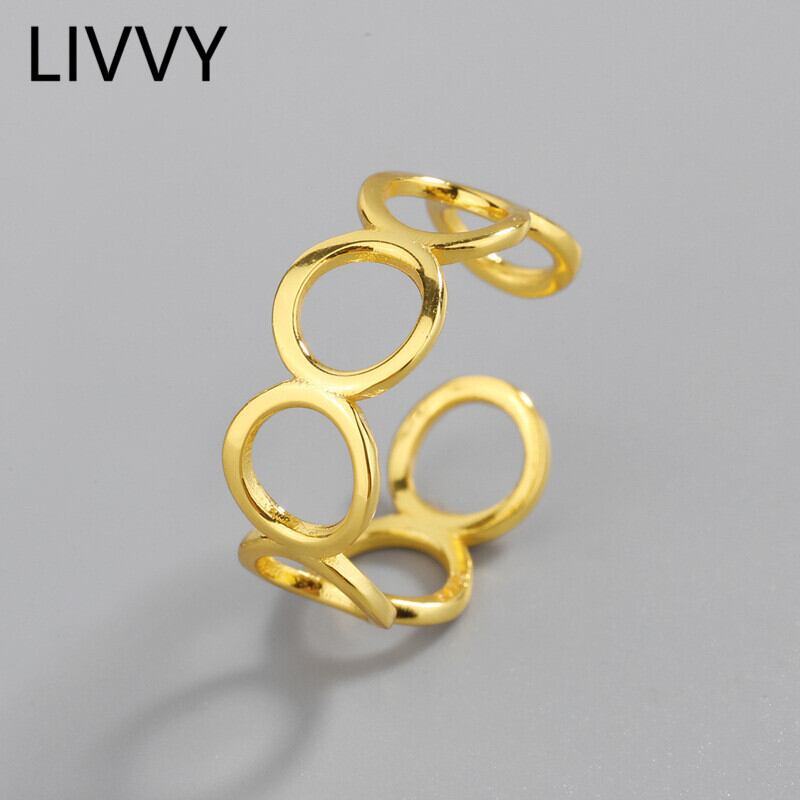 LIVVY シルバーカラー幾何リング女性ローズゴールドジルコンサイズ変更可能なリングウェディングジュエリー 2021 トレンド 指輪 銀 Liv31327574134