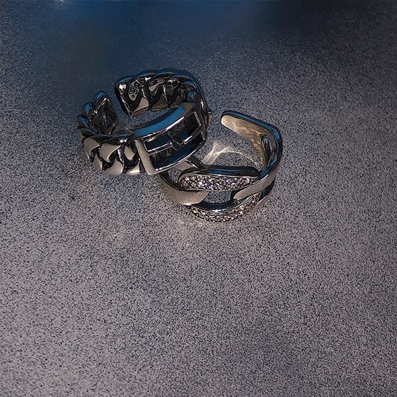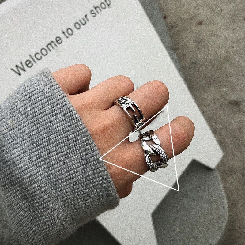 LIVVY シルバーカラークロスチェーンリングメンズレディースレトロパーソナリティコンビネーションリング 2021 トレンド 指輪 銀 Liv45277815898