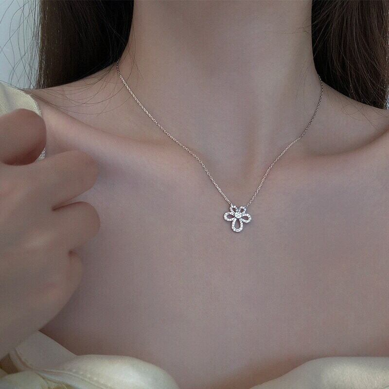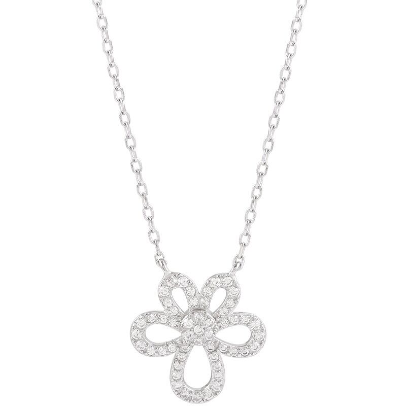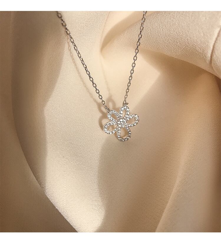 LIVVY シルバーカラー中空花ジルコンペンダントネックレス女性鎖骨チェーンパーティージュエリー レース フラワーデザイン 銀 Liv38004397036