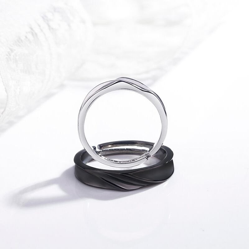 LIVVY シルバーカラースムーズリング女性黒ラウンドジュエリー美しい指オープンリングパーティー誕生日ギフト ブラック 指輪 銀 Liv75891673790