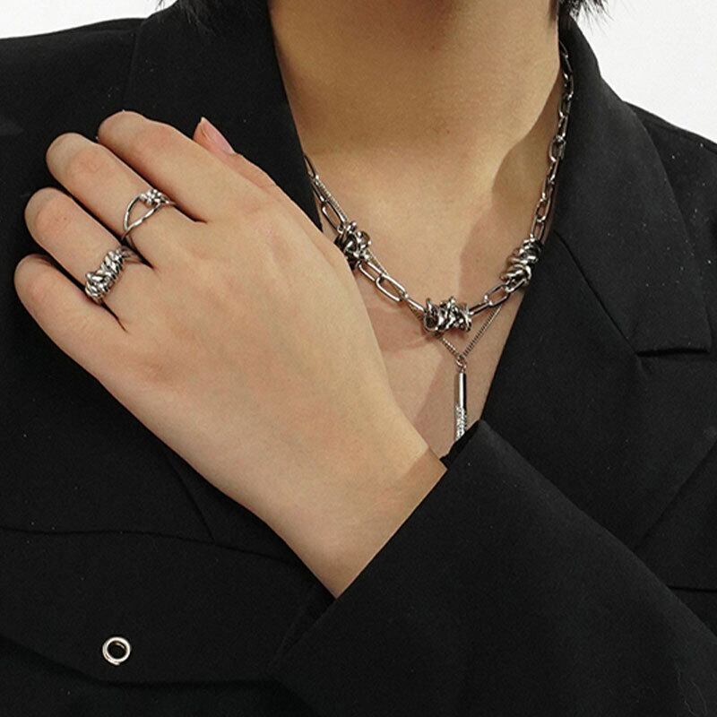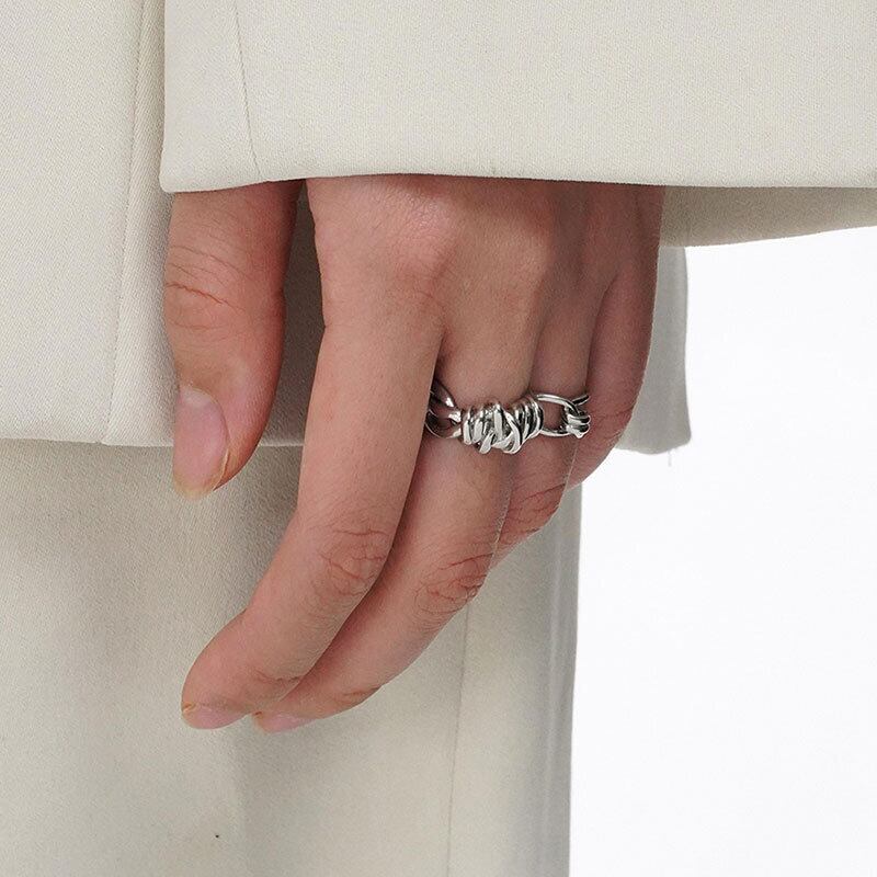 LIVVY タイシルバーカラー織巻きリング女性ライン結び目調節可能な指リングジュエリークリエイティブ アジャスタブル 指輪 銀 Liv9831048662