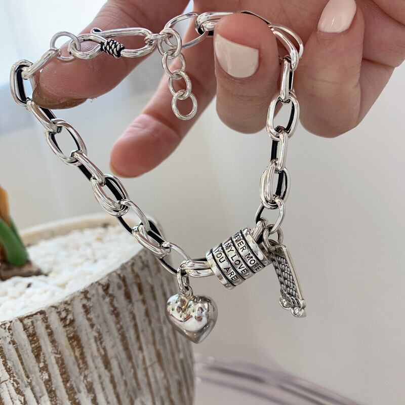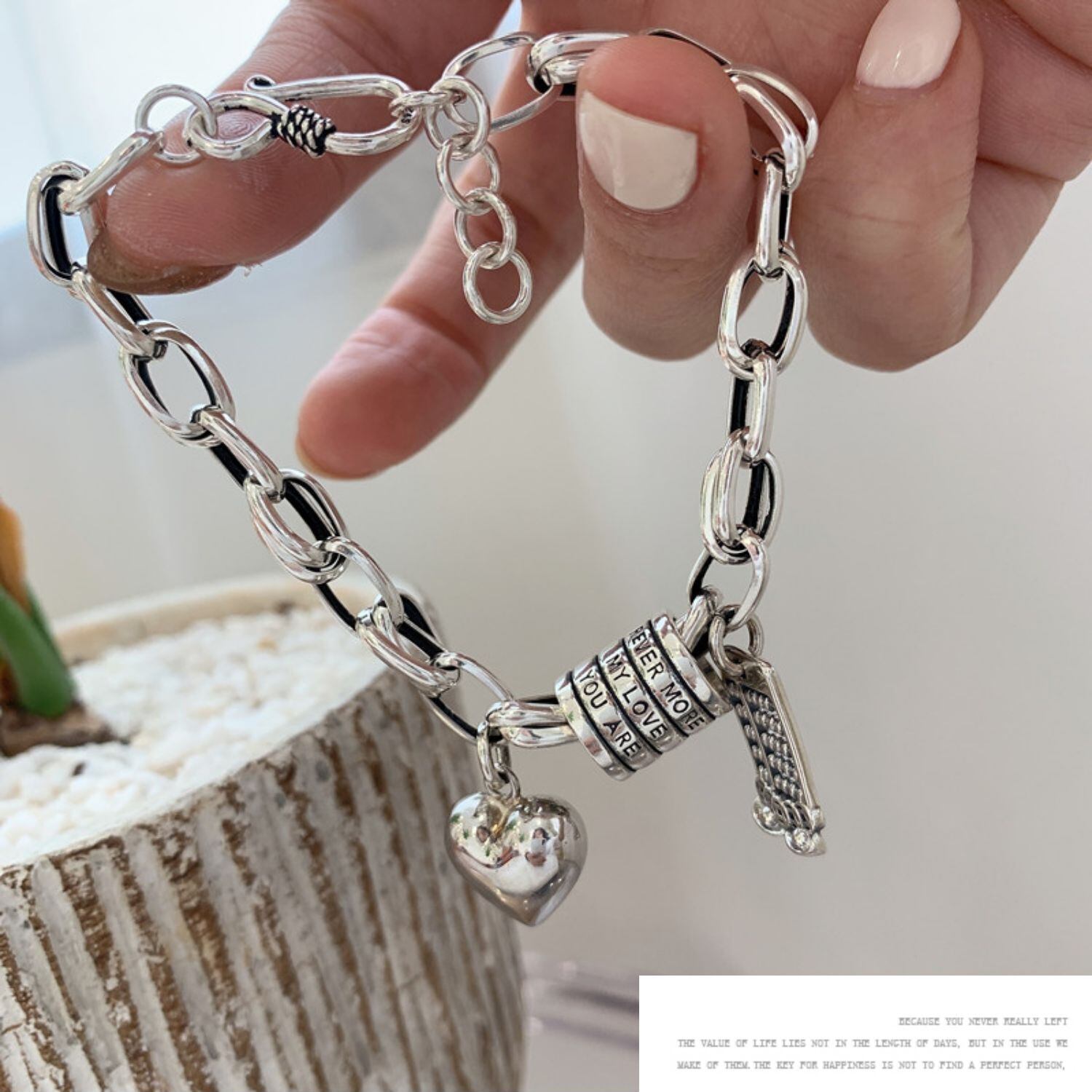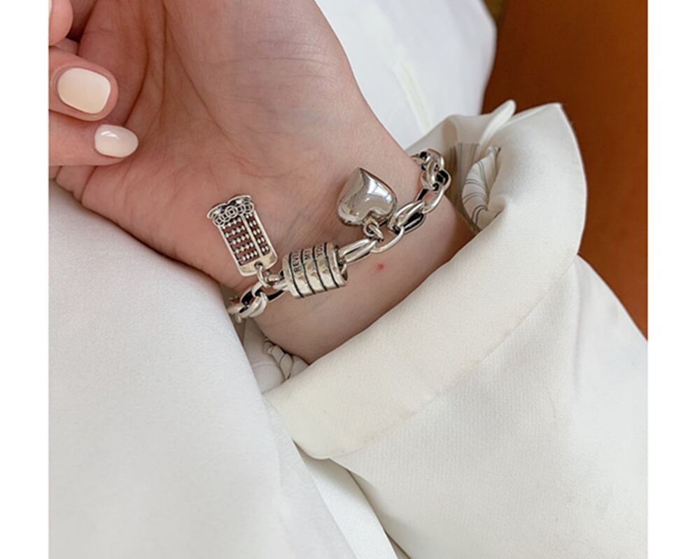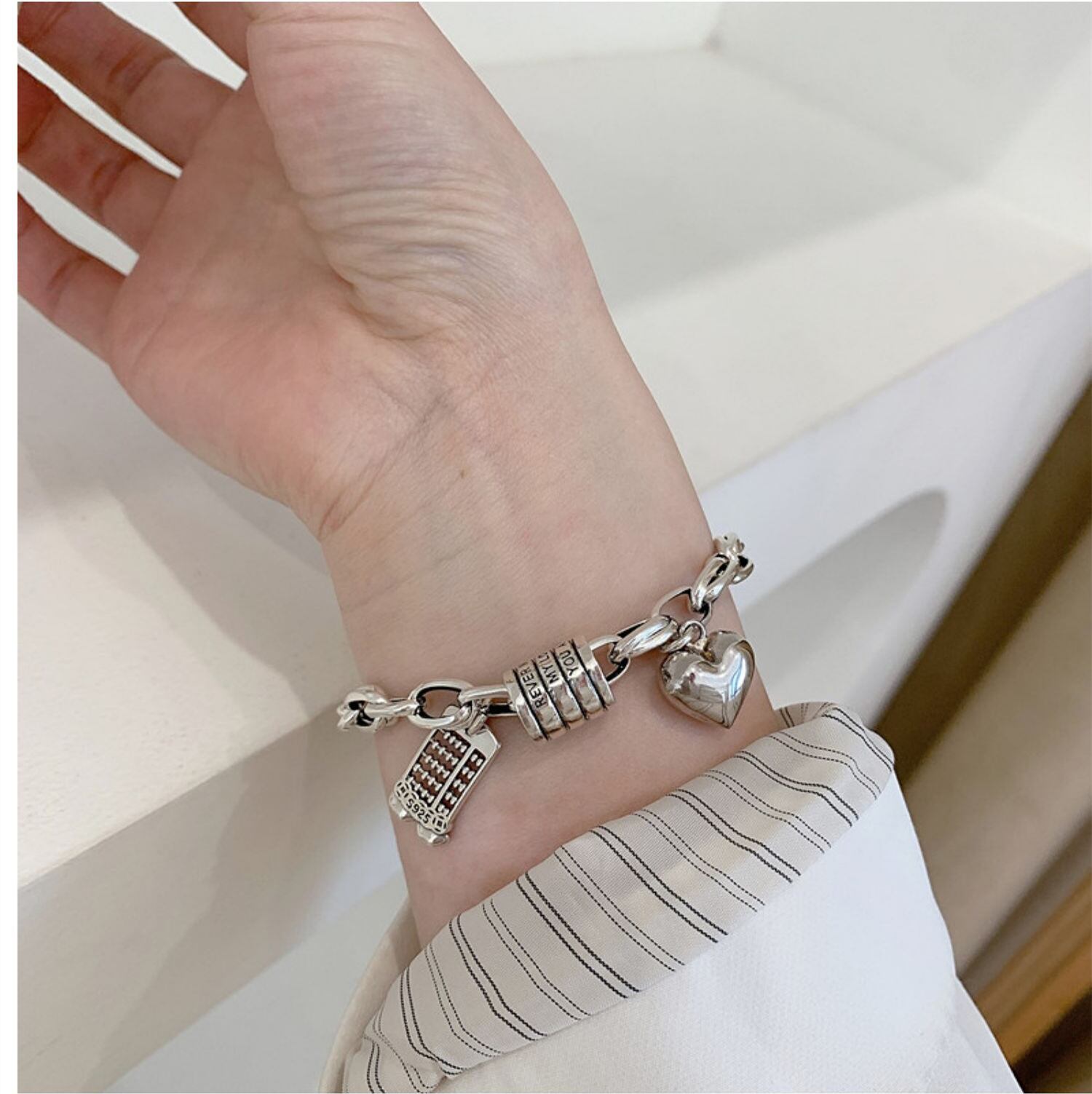 LIVVY シルバーカラーシリンダーラブハートそろばんペンダントブレスレット女性トレンディな気質 Birtgday ジュエリーギフト 銀 Liv17373323749