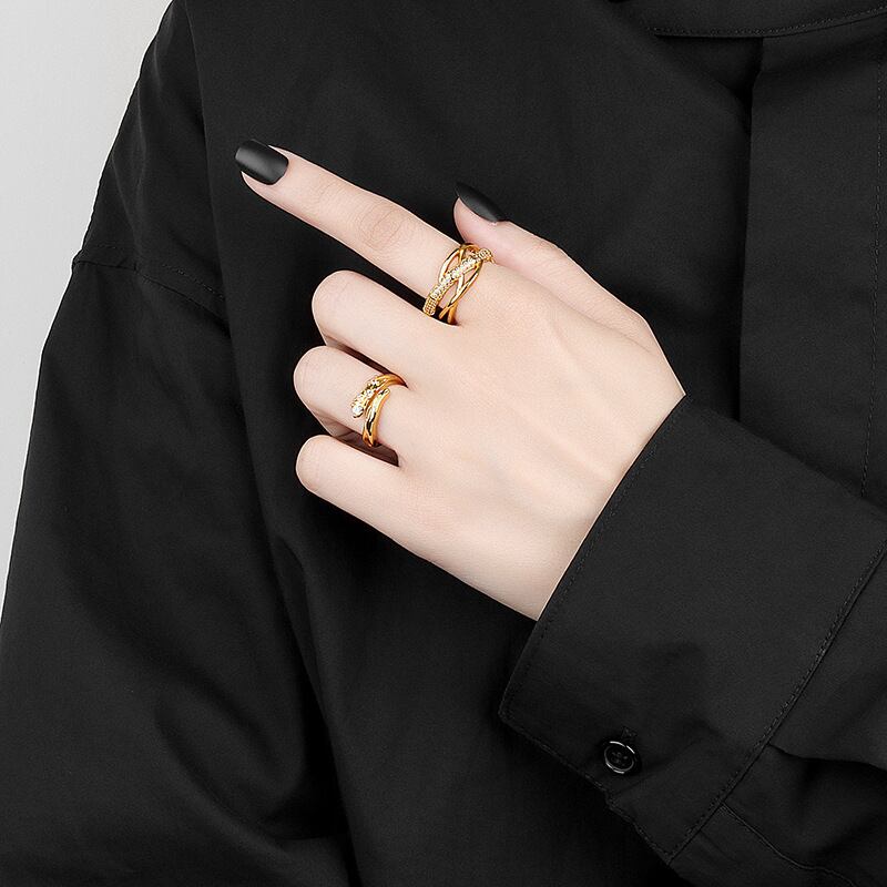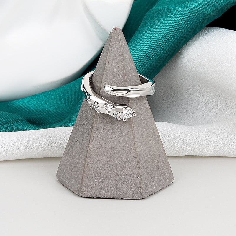 LIVVY ミニマリストシルバーカラー不規則なリング女性ジルコンオープン婚約ジュエリーパーティーギフト 指輪 銀 Liv39790964163