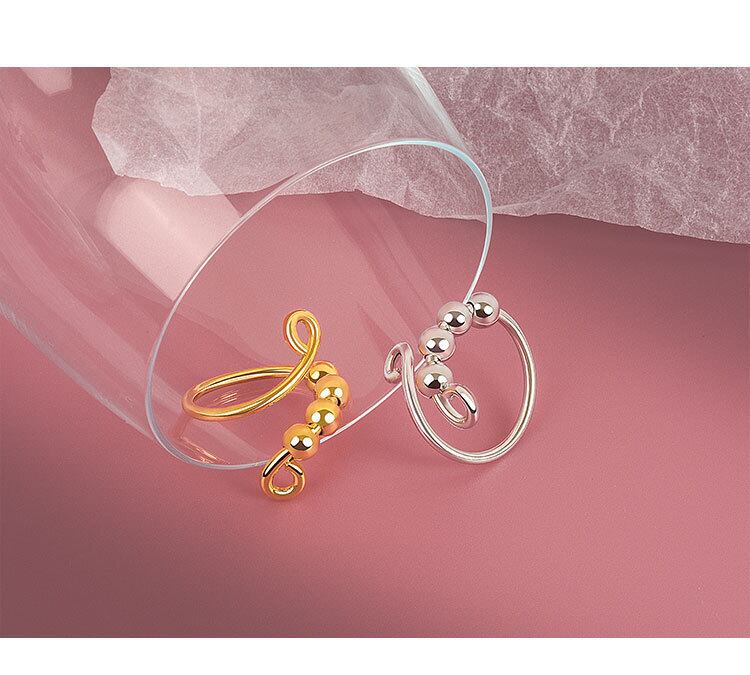 LIVVY シルバーカラー回転式ビーズカーブリング女性カップルオープンユニークな手作りジュエリーギフト 指輪 銀 Liv52405784207