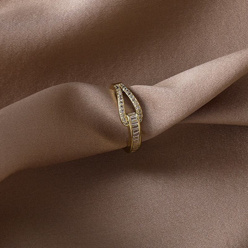 LIVVY クリエイティブ不規則な幾何学中空クリスタルジルコンリング女性ゴールドカラートレンドジュエリーギフト 指輪 Liv36503633445