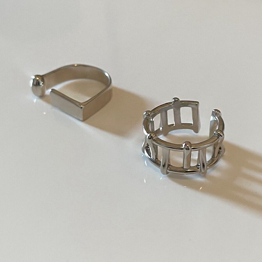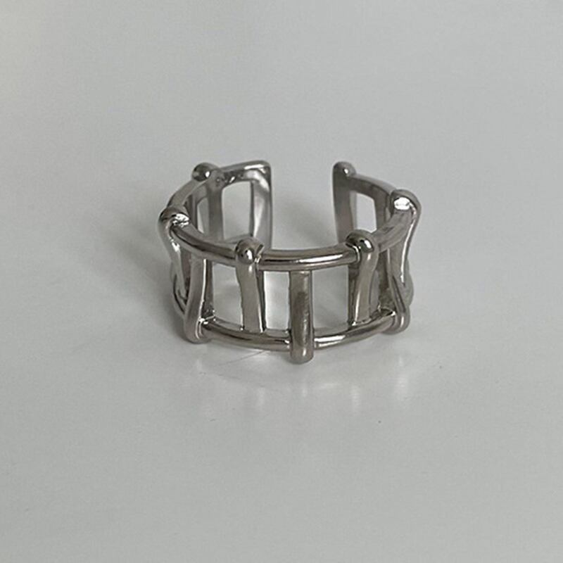 LIVVY シルバーカラーリング女性カップル中空シンプルな幾何学手作りオープニングフィンガージュエリー 指輪 銀 Liv17064702348