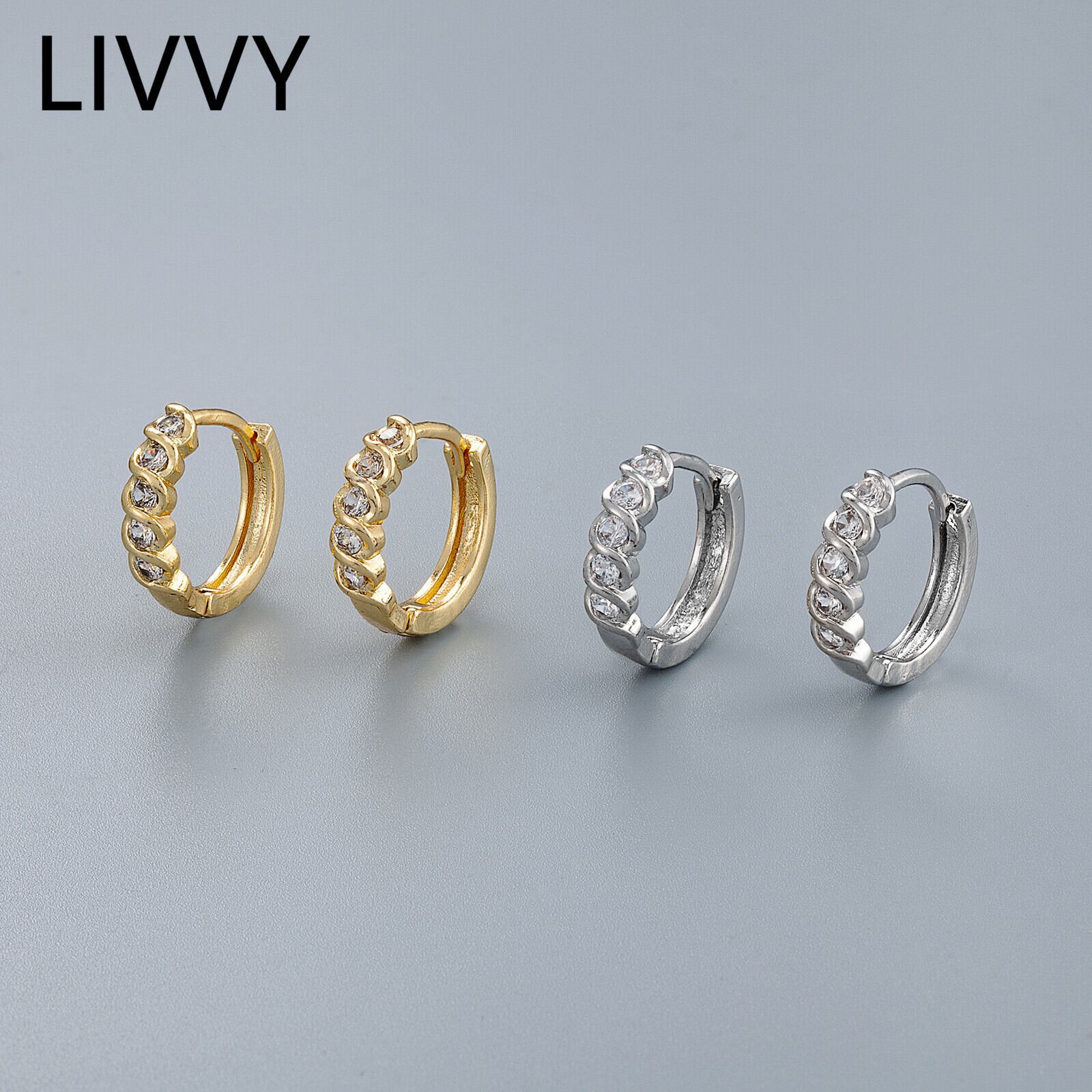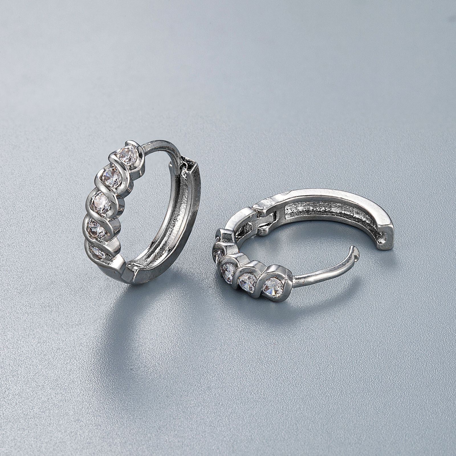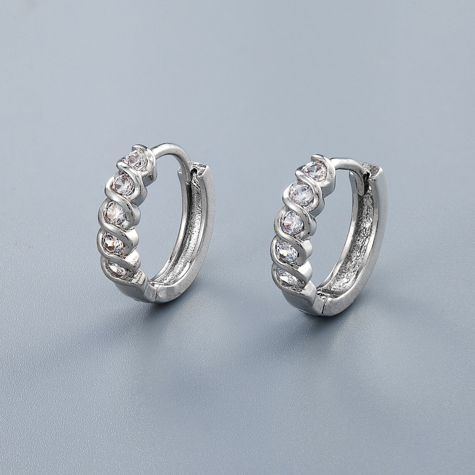 シルバーカラーツイストマイクロ象嵌ジルコンラウンド小さなフープイヤリング女性手作りジュエリーギフトアクセサリー 指輪 銀 Liv19251304687