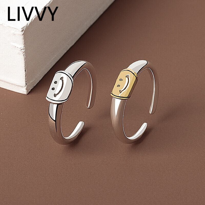 LIVVY シルバーカラークリエイティブ結婚指輪女性スマイルフェイス婚約ジュエリーアクセサリーギフト 2021 トレンド リング 銀 Liv2866352174