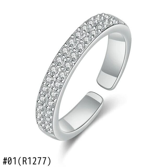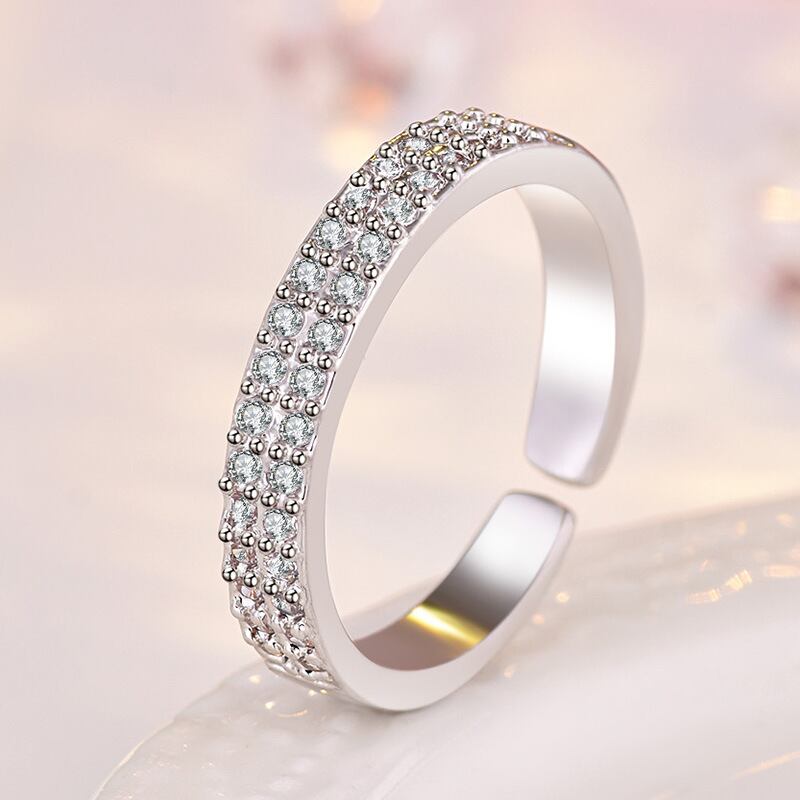 LIVVY ミニマリスト幾何学オープン二列ジルコンリング女性ジュエリーアクセサリー 指輪 Liv12473694050